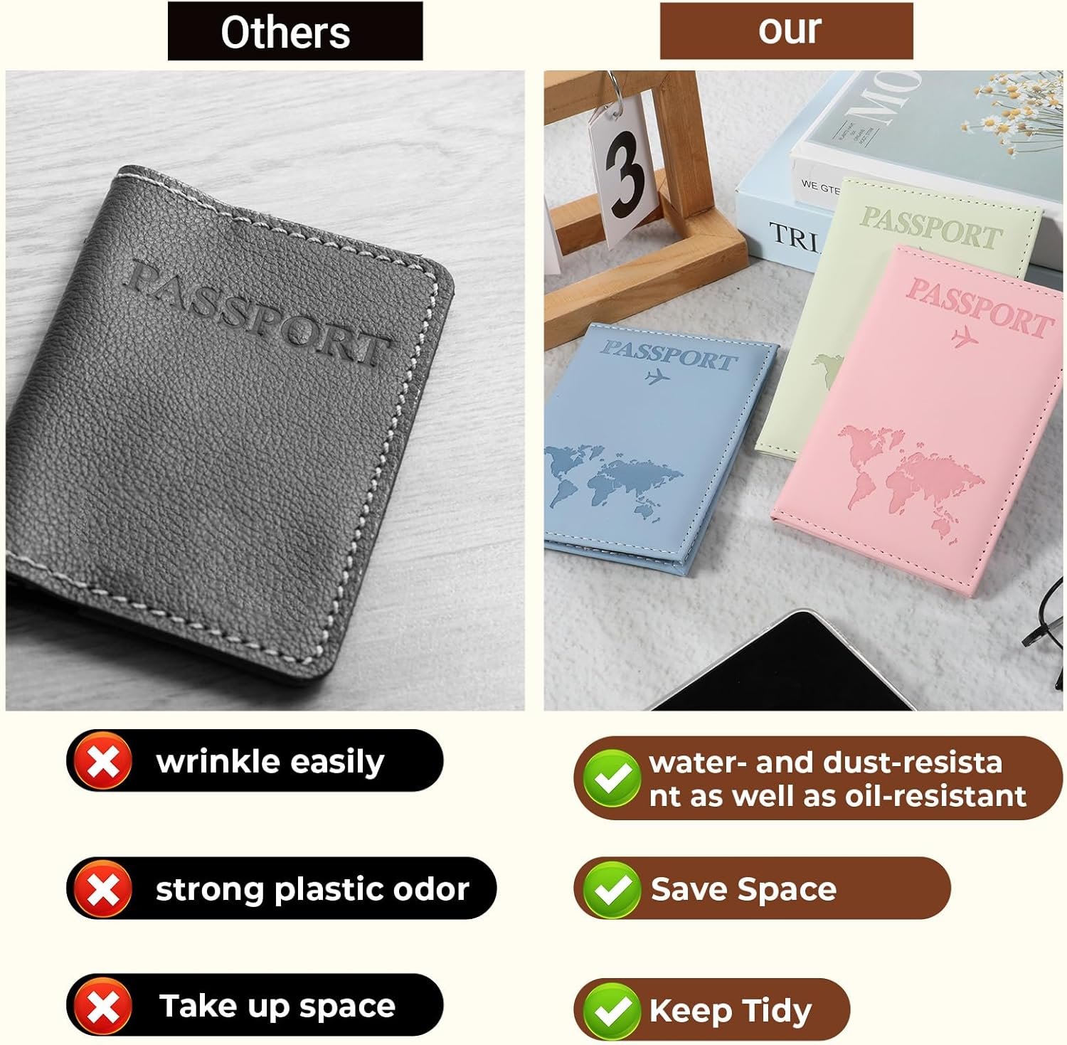 【Durable Material】Our passport holder is made of PU leather, which is soft and comfortable to the touch, ensuring durability and protecting your travel essentials