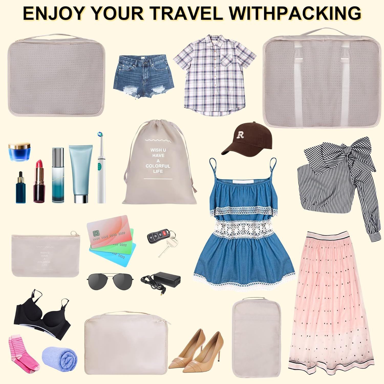 Save Time and Space:Using this fabric travel cube packaging, you can put all your luggage in your carry-on luggage or suit bag, saving time and space. These travel bags are the present for travelers, yourself, friends or relatives. Backpacking, travel, fitness, beach or tourism.