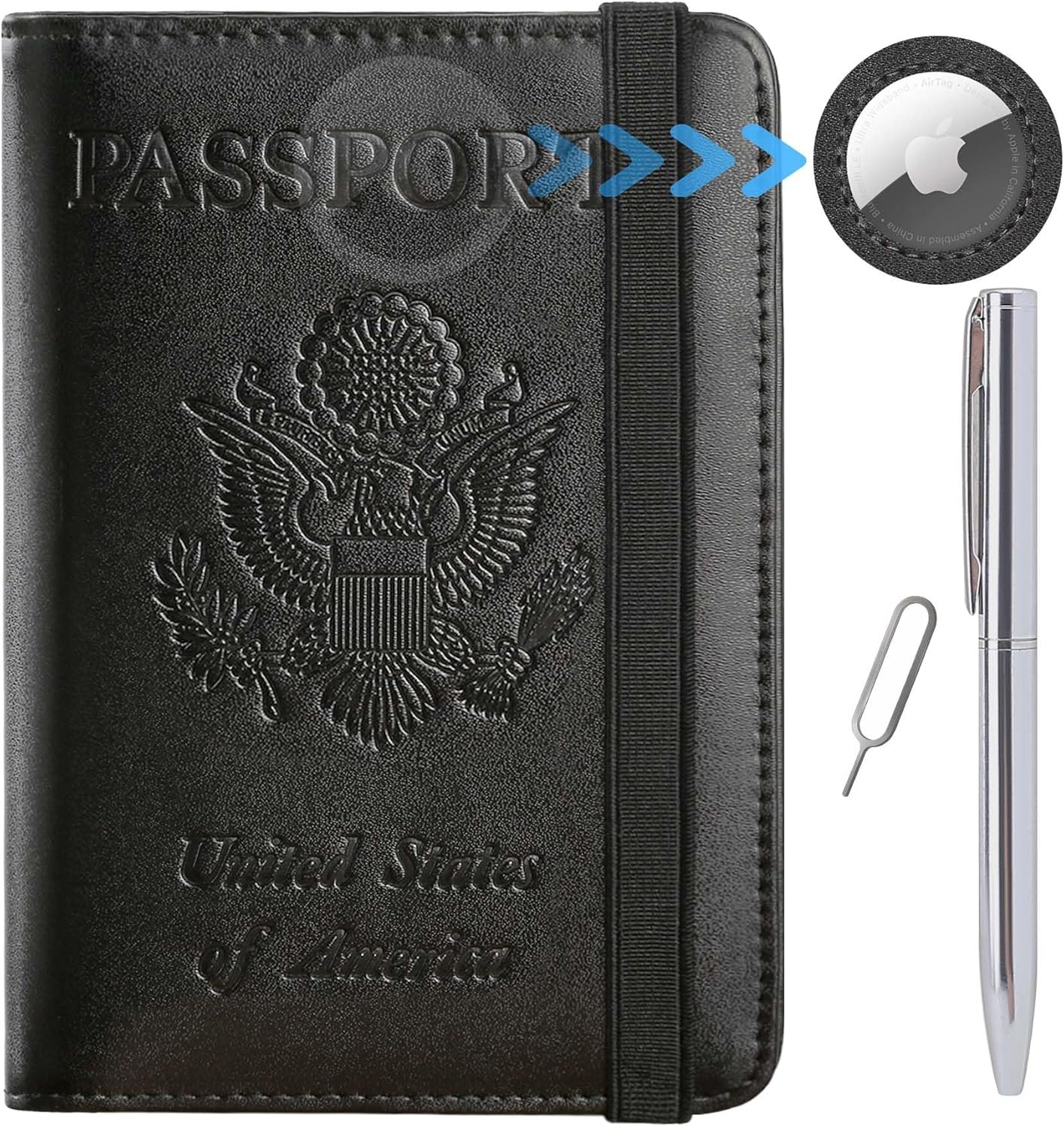 Airtag Passport Holder Cover Wallet Travel Essentials RFID Blocking Leather Card Case International Must Haves Travel Accessories for Women Men(119#Black)