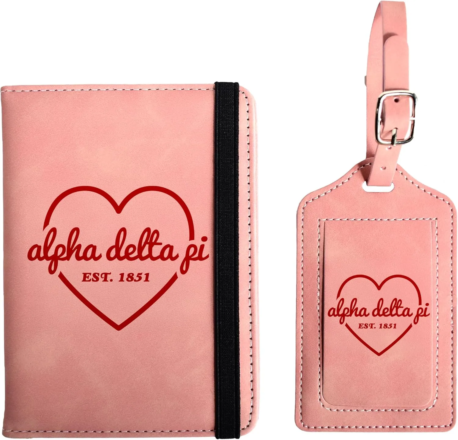 Alpha Delta Pi Passport Holder and Luggage Tag Travel Accessories Set, Officially Licensed Alpha Delta Pi Sorority Gift for Women