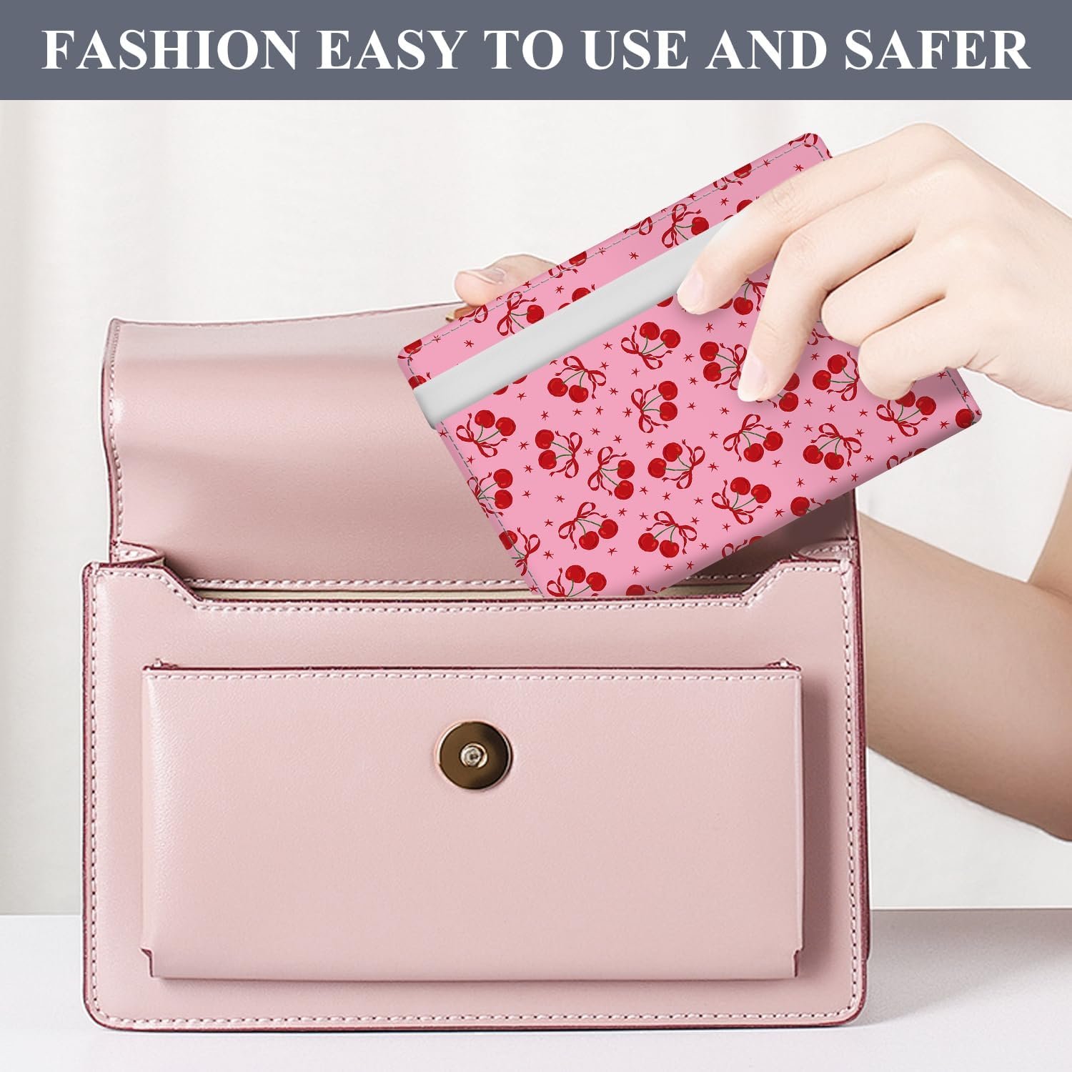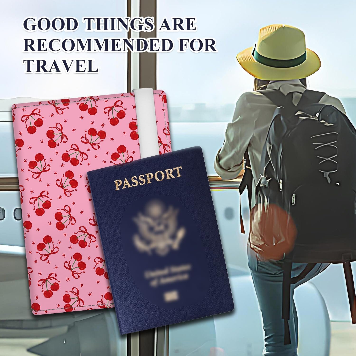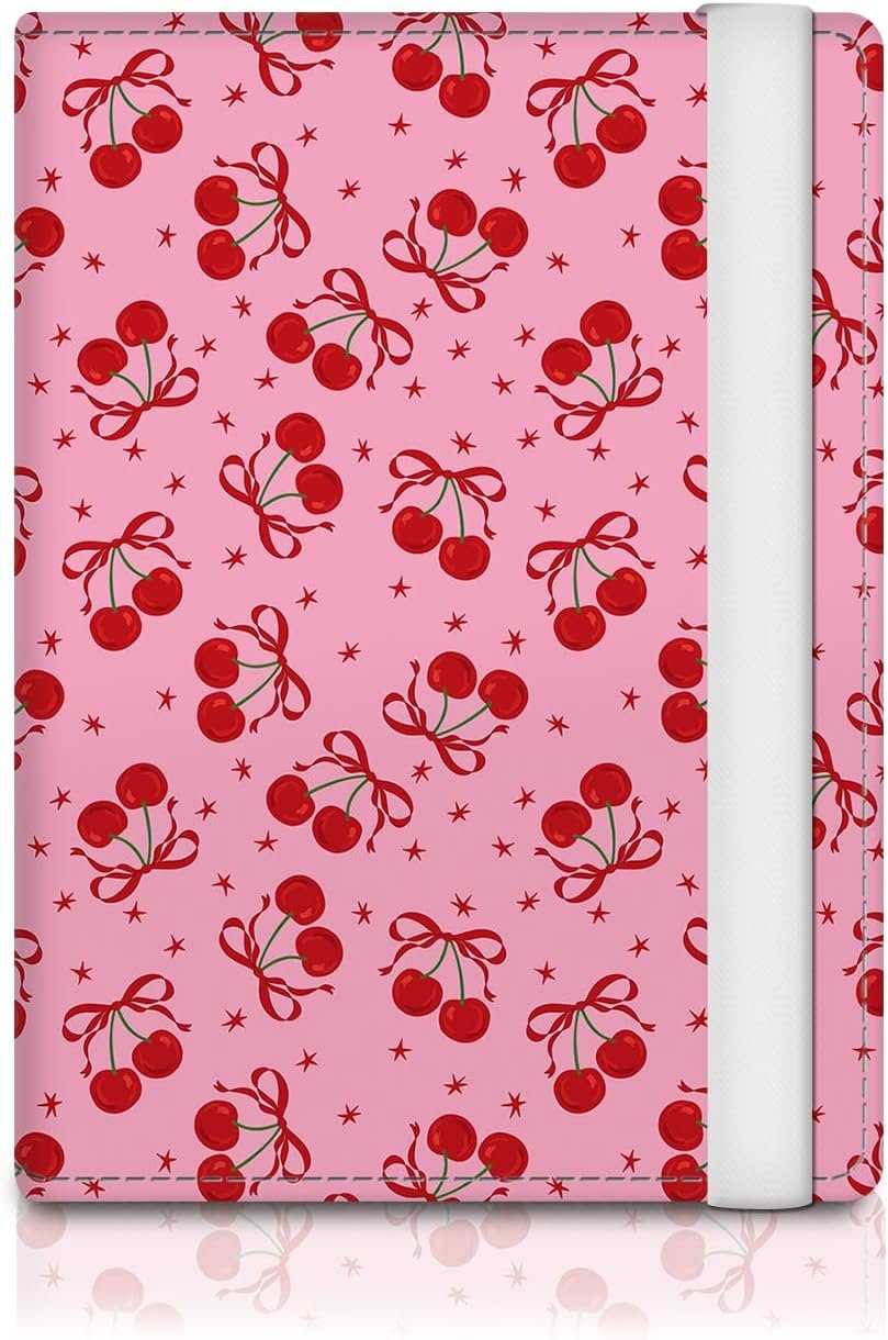 ATJFKIXL Passport Holder for Travel Essentials, RFID Premium Leather Passport Wallet Cover Case for Travel Must Haves Accessories, Passport Book Holders for Women Men Cute Pink Bowtie Cherry
