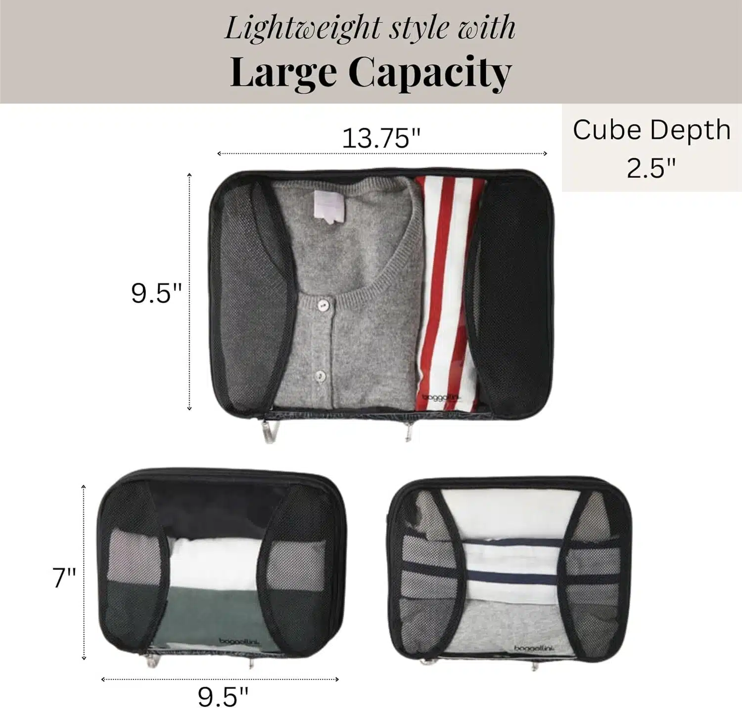 Baggallini Compression Cube 3-piece set – Lightweight Compression Packing Cubes for Travel
