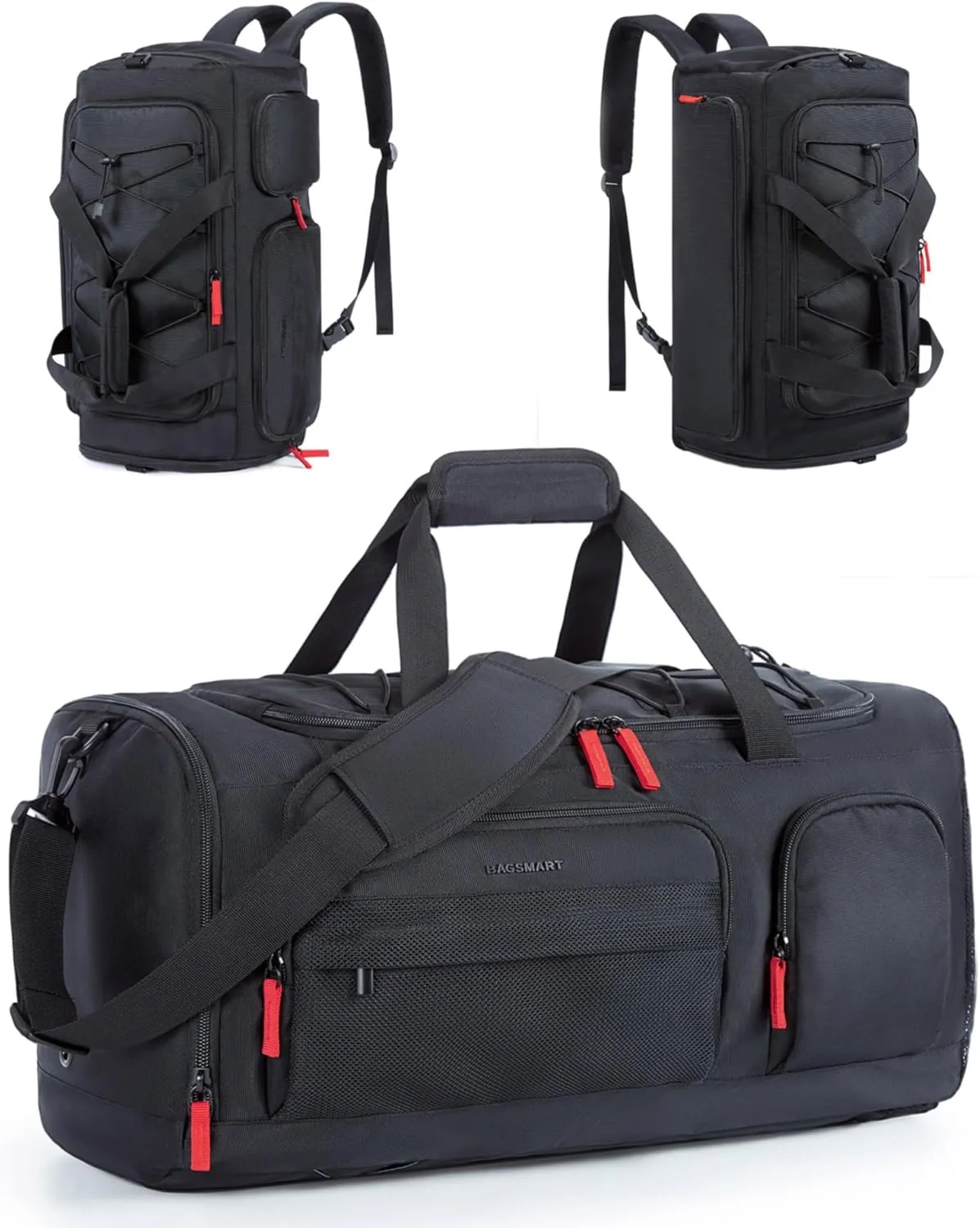 Spacious & Multi-Compartments: The BAGSMART sports bag is designed to meet all your storage needs. With multiple compartments including a waterproof pocket, a 13.3″ laptop compartment, and an inner zipper pocket, this gym bag keeps your belongings neatly arranged and easily accessible. Carry everything you need in one convenient and organized space. Dimensions:20.8×10.2×9.8 inches