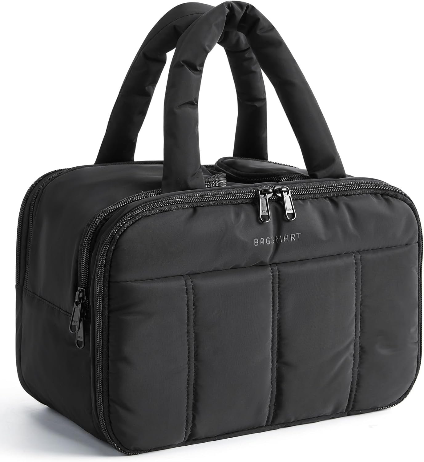 BAGSMART Travel Toiletry Bag, Puffy Large Toiletry Bag for Women, Lightweight Cosmetic Makeup Bag Organizer with Handle for Traveling, Accessories, Essentials, Toiletries (Black)