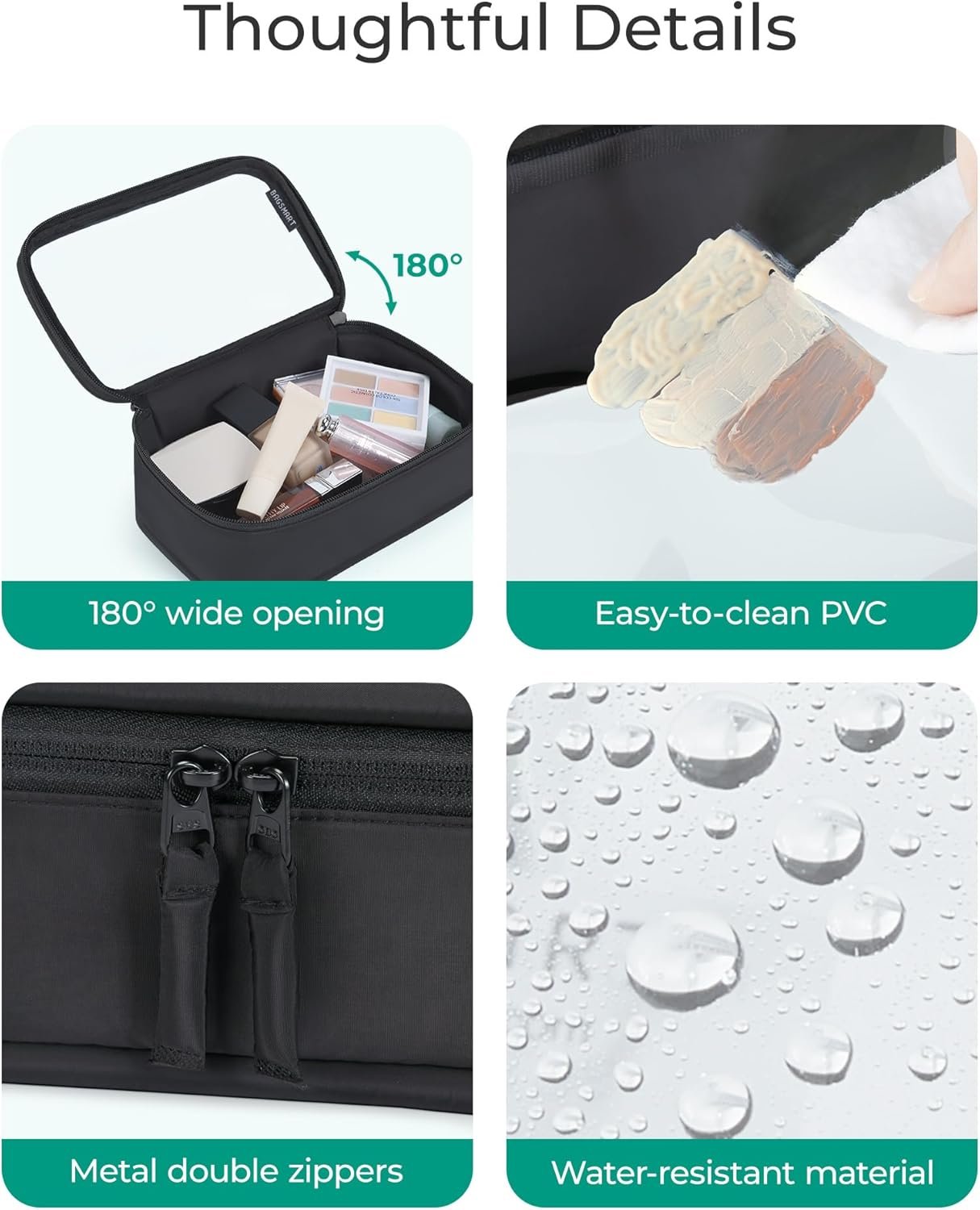 Wide Opening for Easy Access: The durable dual zippers allow the bag to open a full 180 degrees, the clear PVC panel and wide opening make it quick and convenient to grab what you need without having to rummage