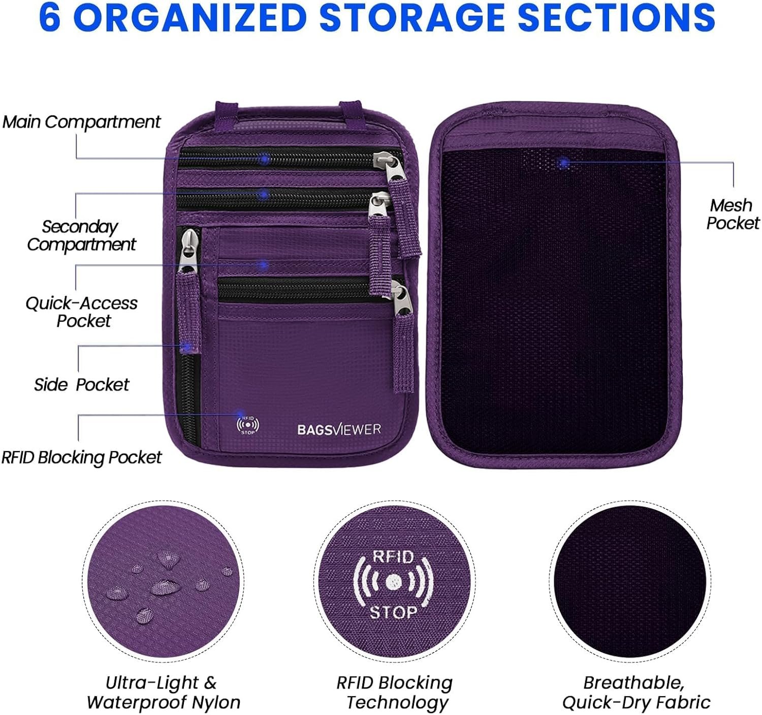 Multi-Compartment Storage: Featuring six spacious compartments, this travel wallet effectively organizes your passport, tickets, cards, cash, smartphone, and other essential items