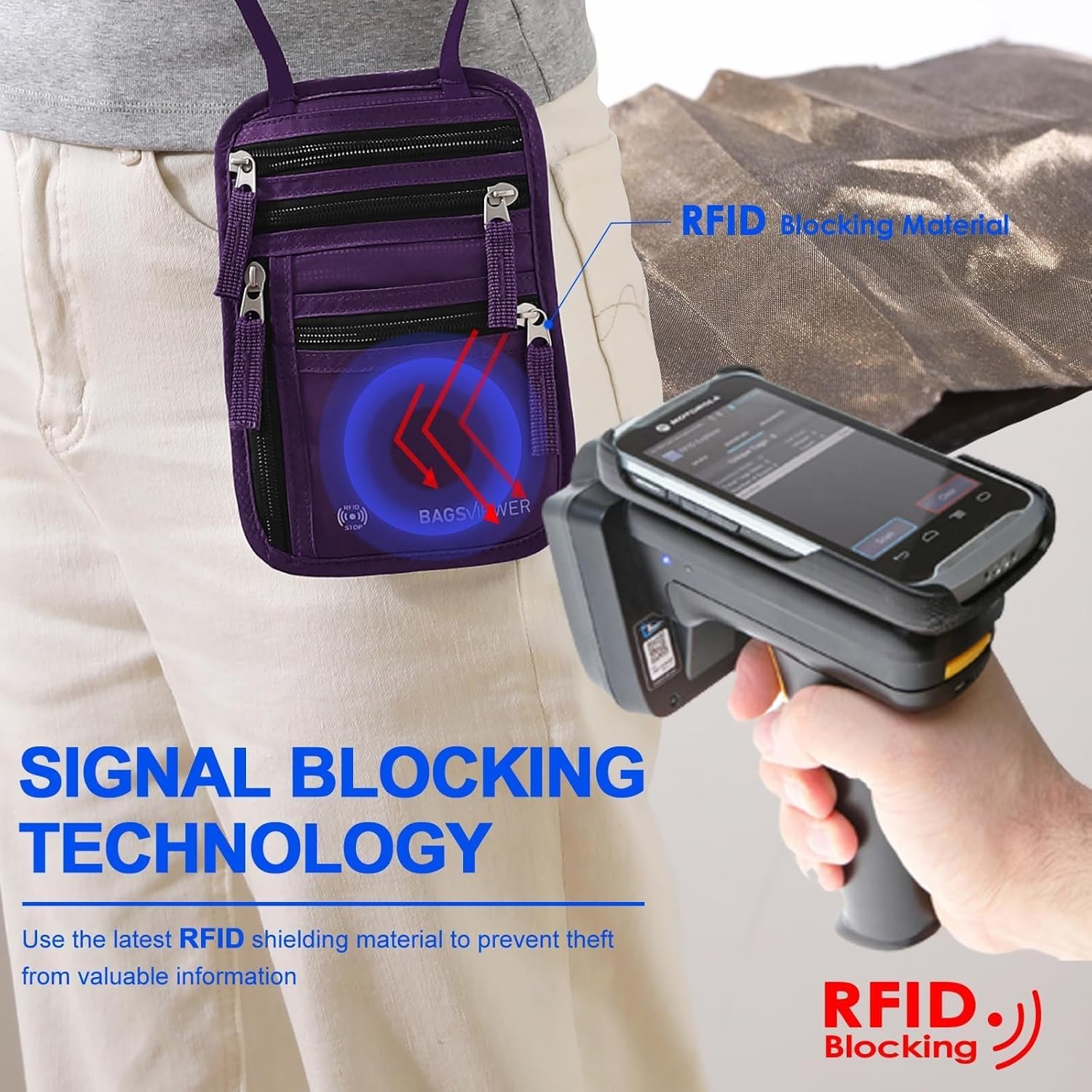 RFID Blocking Technology: This travel wallet incorporates advanced multilayer RFID lining that protects your ID, passport, credit cards, and personal information from digital theft, ensuring a secure travel experience