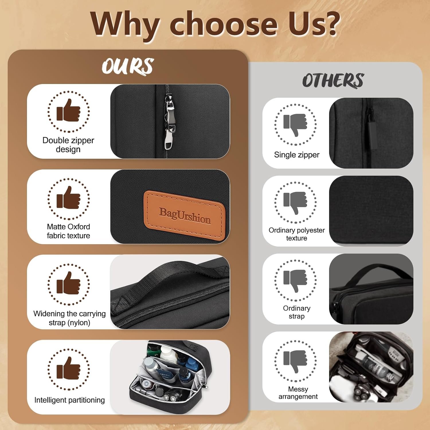 ✦ TRI-LAYERED SECURE ACCESS: Ideal toiletry bag for men, this large shaving bags features;Internal: Waterproof PVC pocket for wet items (towels/toothbrushes) Zippered pocket for tweezers/cotton swabs;External: Quick-grab pocket for phones/passports/wallets