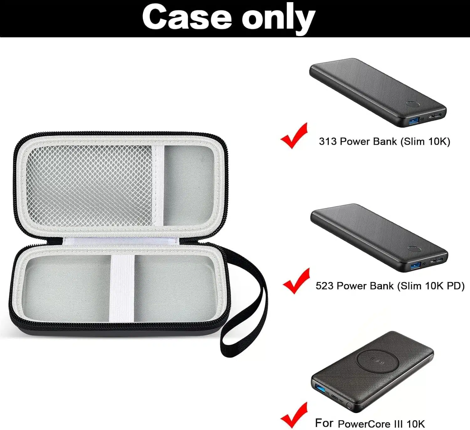 Case Compatible with Anker Portable Charger, 313 Power Bank (for PowerCore Slim 10K) / 523 Power Bank (Slim 10K PD) 10000mAh Battery Pack. 10K Battery Pack Storage Holder Bag (Box Only)- Black