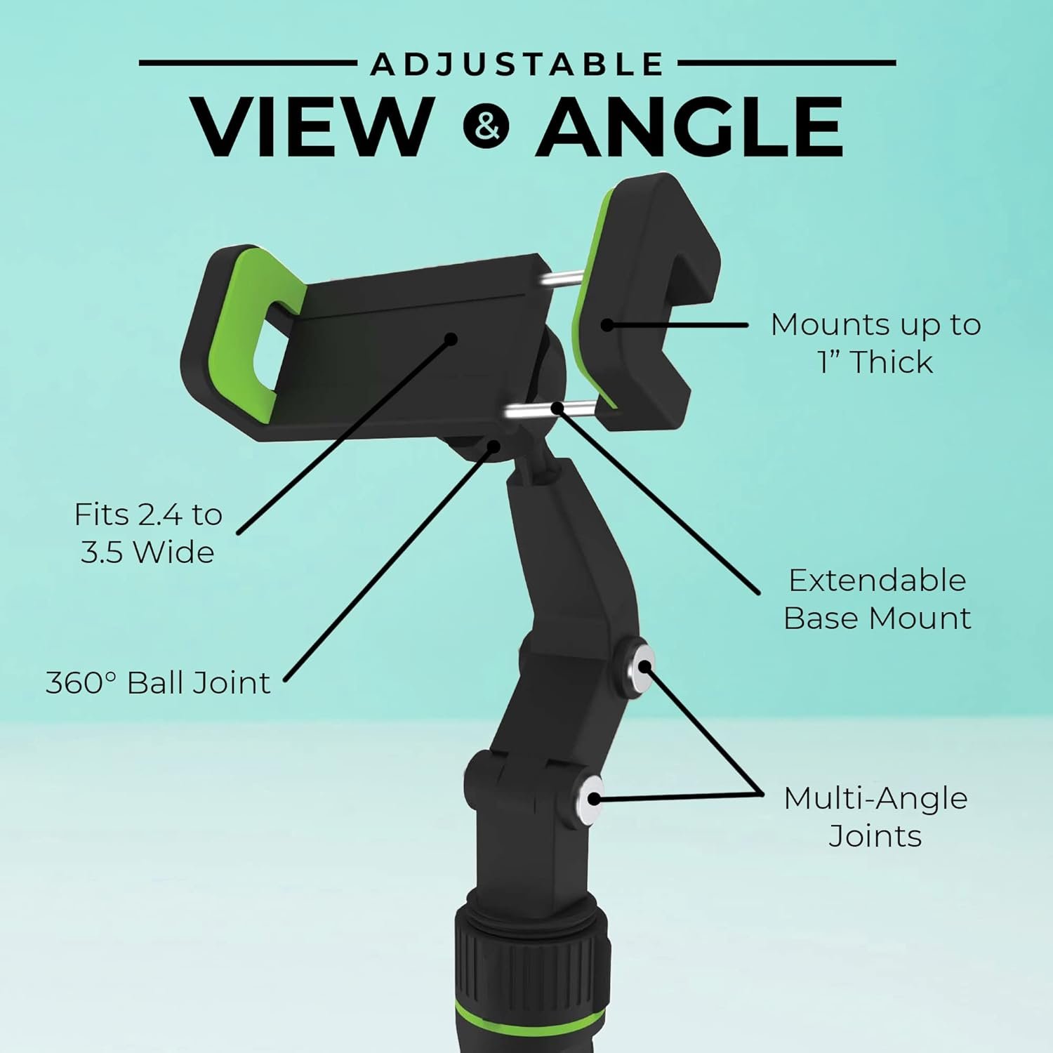 2.4” – 3.5” Extendable Clamp: The mount’s clamp extends to support and securely grip numerous smartphones. Simply slide the clamps out, insert your smartphone, and let them slide back in for easy, convenient, and safe interaction between you and the smartphone.