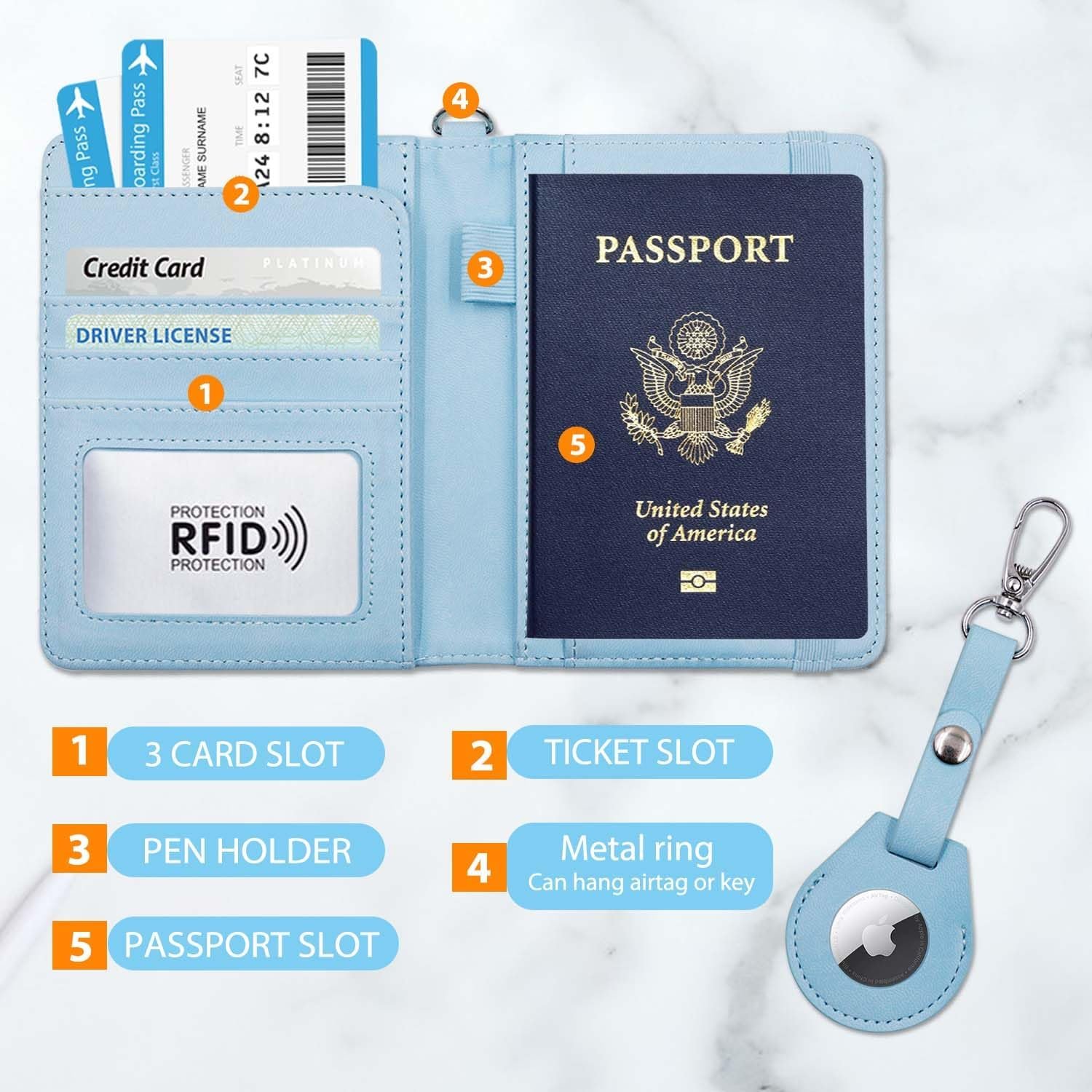 AIRTAG TRACKING OR DIY:The Airtag Passport Holder Cover Wallet Case comes with a dedicated spot for the Airtag,The perfect combination of airtag and passport ensures you will never lose your passport wallet again.Or you can remove the protective cover of the airtag and decorate it with any pendant you like,such as the keychain, purse,luggage case or backpack.(DOESN’T INCLUDE THE AIRTAG)