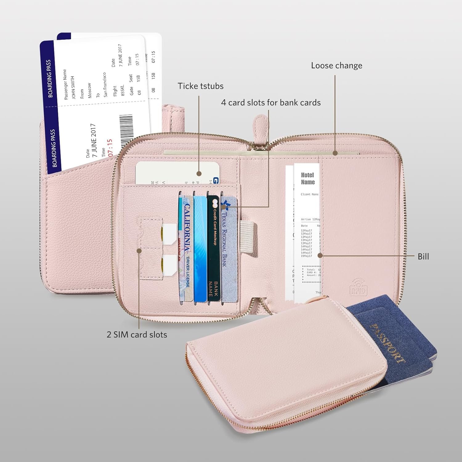 Perfectly Organized: Keep all your essentials in one place with our expertly designed product. Featuring a variety of pockets and compartments, holding passports, ID cards, cash, and other important items has never been easier or more secure