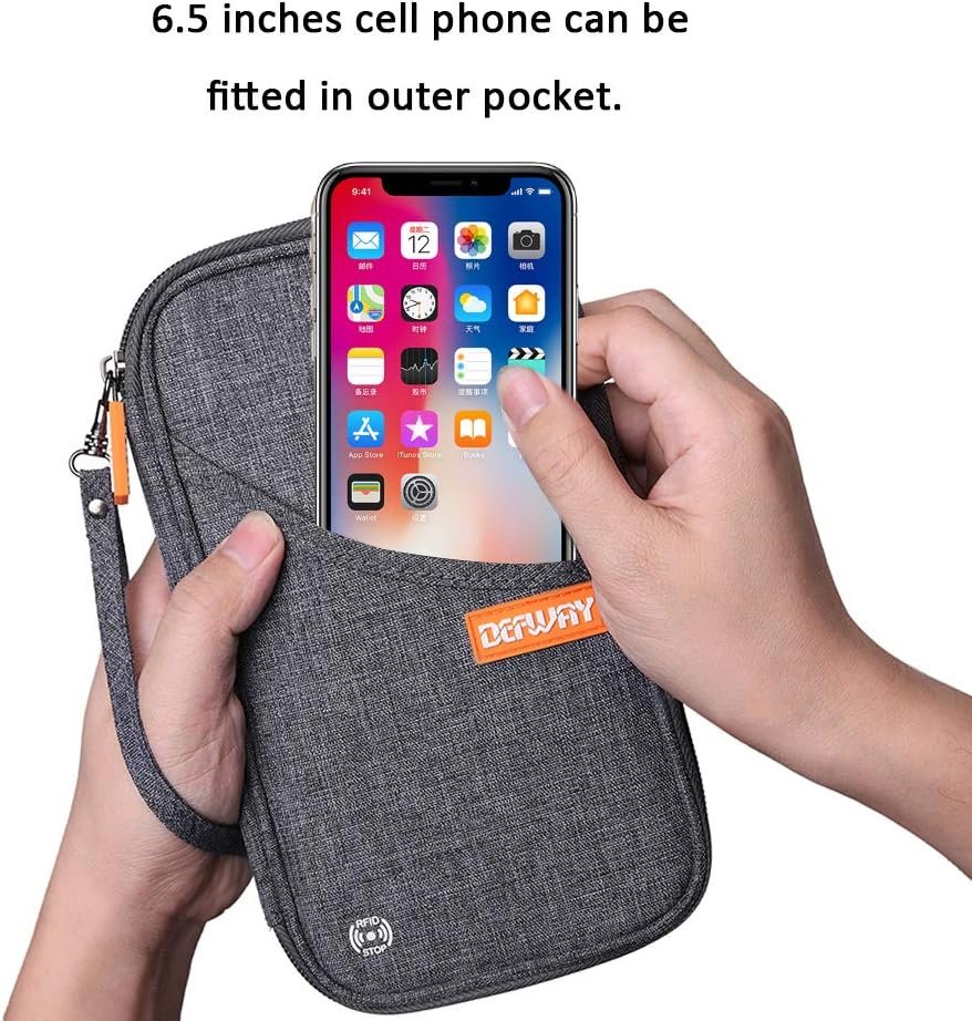 THOUGHTFUL OUTSIDE STORAGE: The pocket is conveniently placed on the front of the passport wallet, which is great for storing your phone or any other frequently used items. The pocket slots are designed to be wide enough, enabling them to accommodate large cell phones. And it comes with a removable wristlet strap, You can keep everything at your fingertips, ensuring that your items are not only handy but also highly convenient to access at all times.