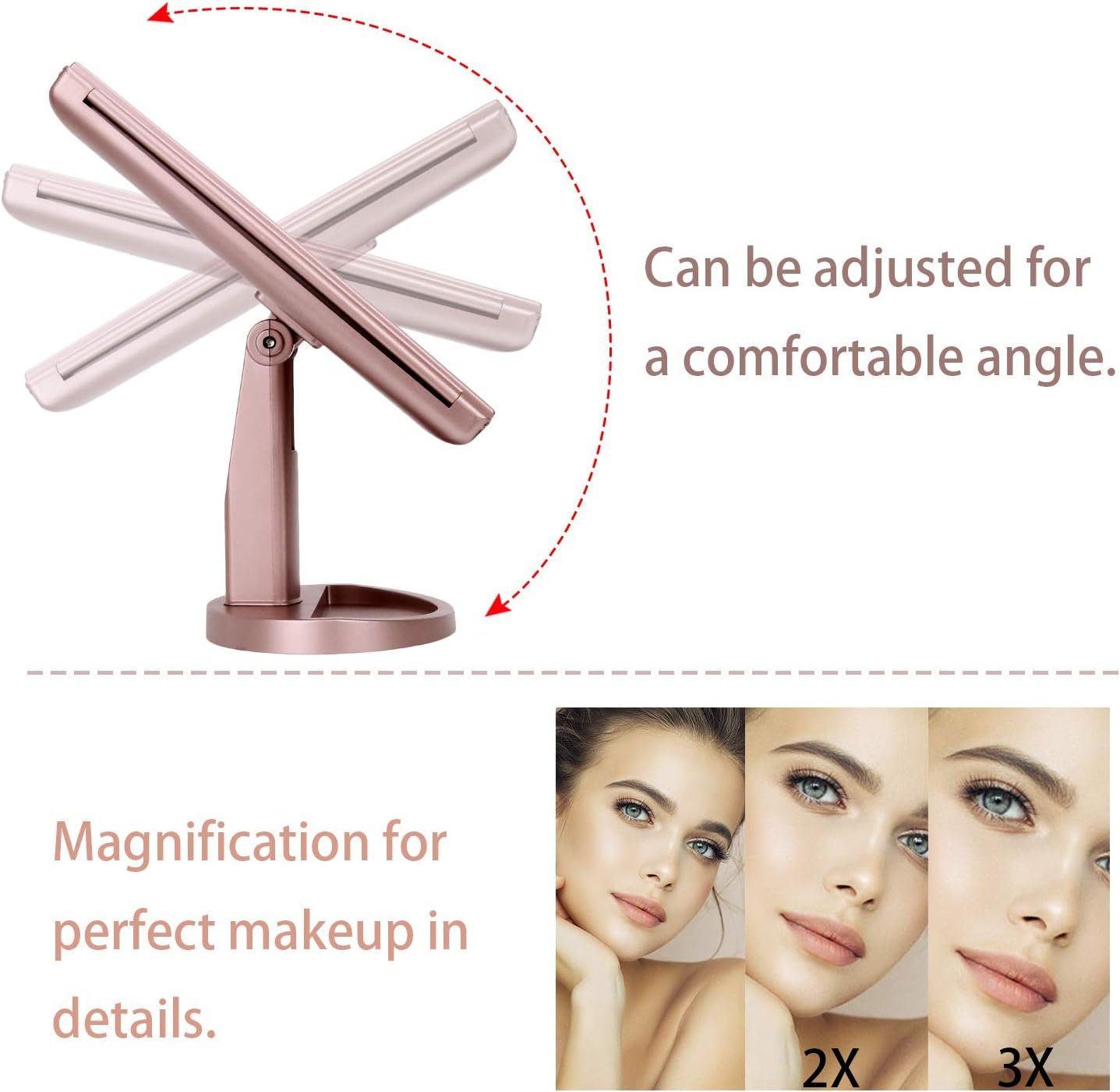 Side-view mirror panels adjust for custom viewing.3X/2X/1X Magnification used together for perfect makeup, you can see the tiniest beauty details,great for grooming brows,applying eyeliner,and tweezing.And the Base Recess can hold jewelry or cosmetics like watch, earrings, bracelets, etc. Perfect gift for ladies and girls.