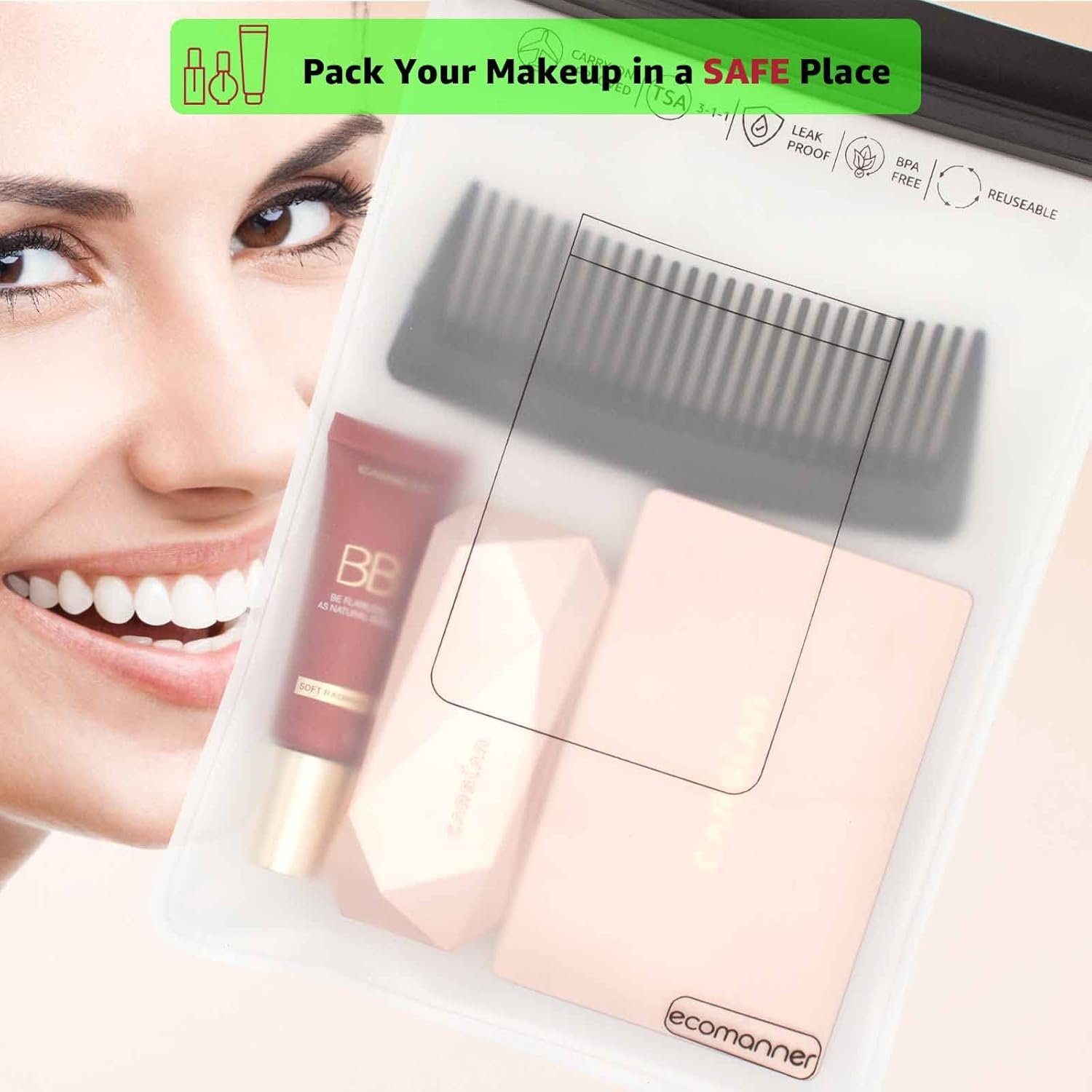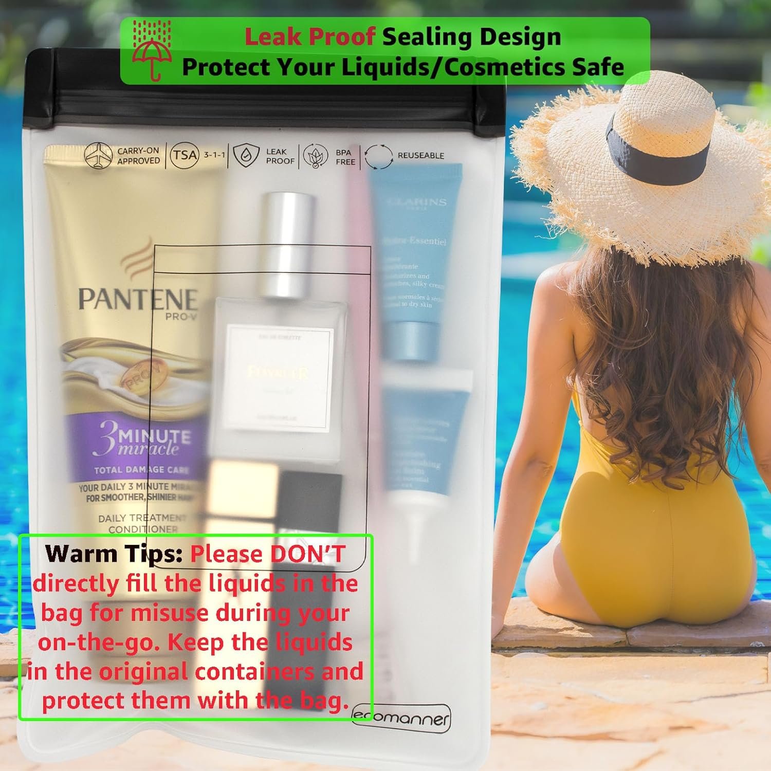 Carry-on Approved: Follow 3-1-1 liquids rule and proceed quickly through the airport security checkpointLeak-proof: Prevent your liquids from leaking, protect your travel gears dry and safeSustainable PEVA material: Reusable, heavy duty (NO FLIMSY), soft hand-feel, PVC/BPA freeVersatile: Pack your passport, cosmetic, makeup, electronics accessories and wet towel or underwear safely