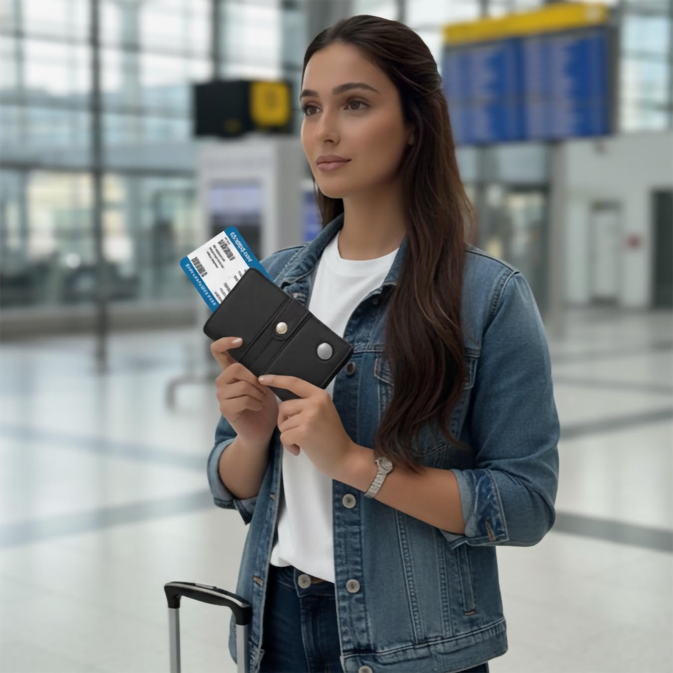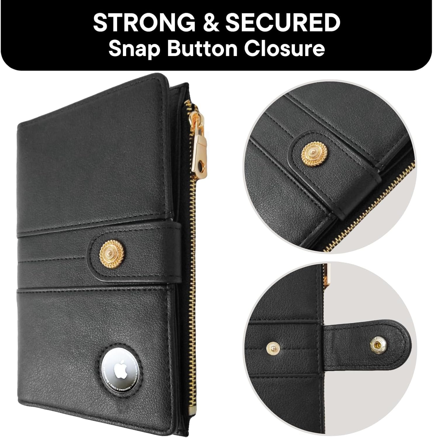 Black passport wallet for women with secured airtag slotBlack passport wallet for women with secured airtag slot