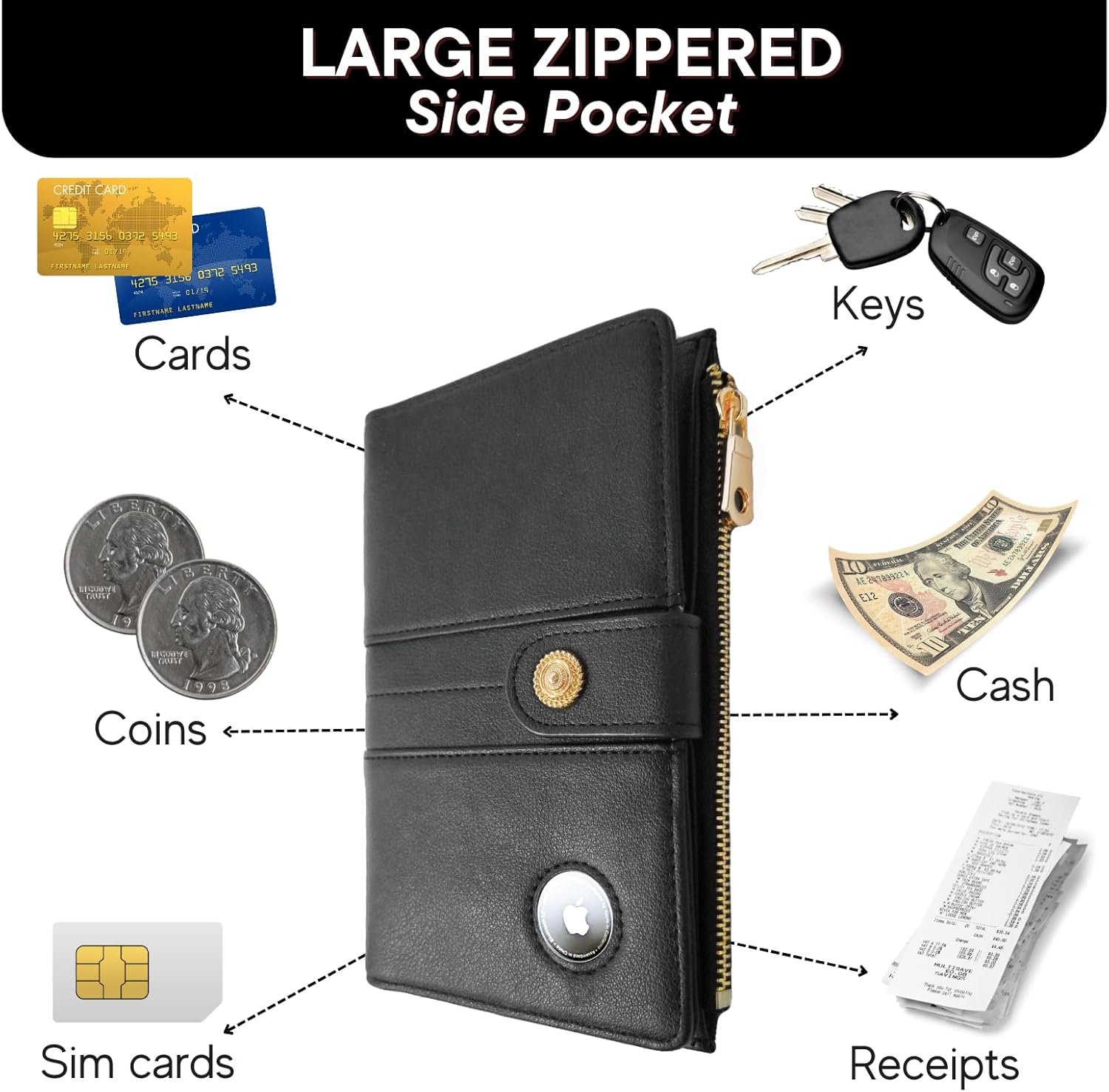 Zipper Passport Wallet with Pen Holder: Our airtag passport holder for travel has zip pocket on the side to store your coins. There’s also a pen slot to meet all your travel needs.