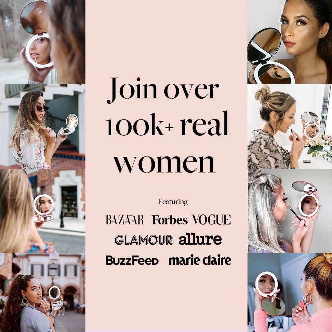 Fancii Led Lighted Travel Makeup Mirror, 1x/10x Magnification – Daylight Led, Compact, Portable, Large 5″ Wide Illuminated Folding Mirror (Lumi) Rose Gold
