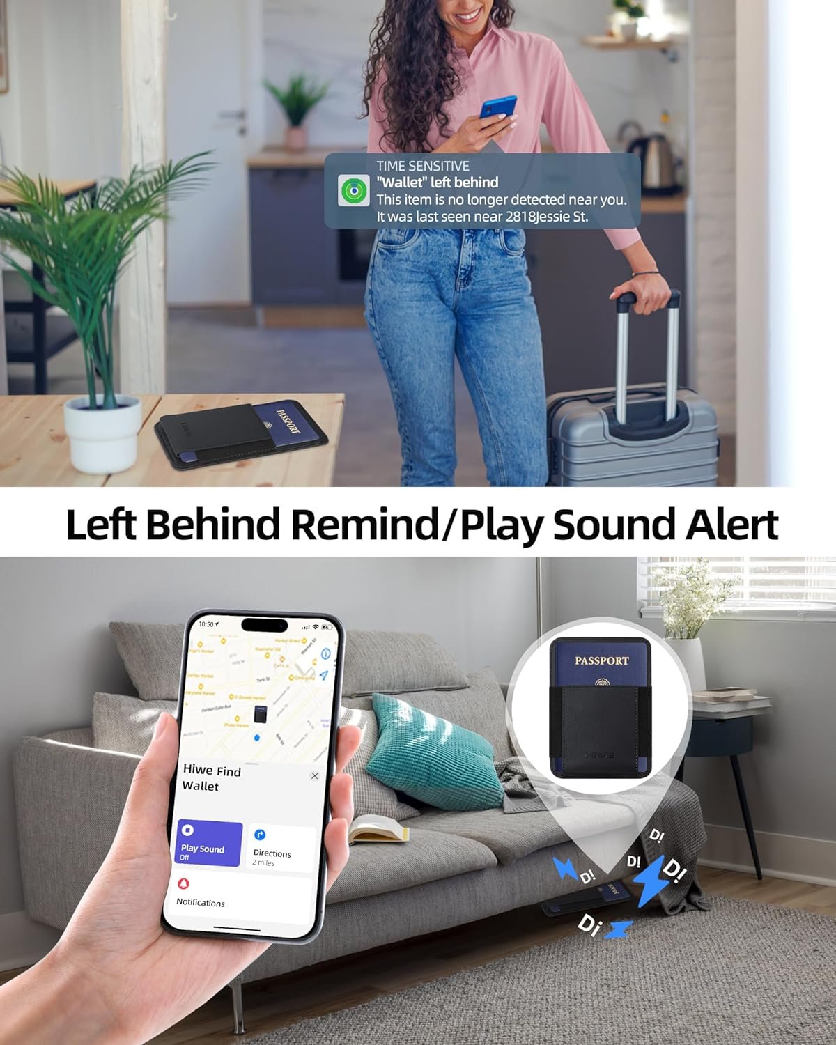 【Works with Apple Find My and Privacy Protection】 Track your wallet globally via Apple’s encrypted Find My network; All communications are anonymous, and no location data is stored; Features Left-behind Alerts, Play Sound, and Direction Map, Excludes UWB; Bluetooth range 50m; Alarm 100dB