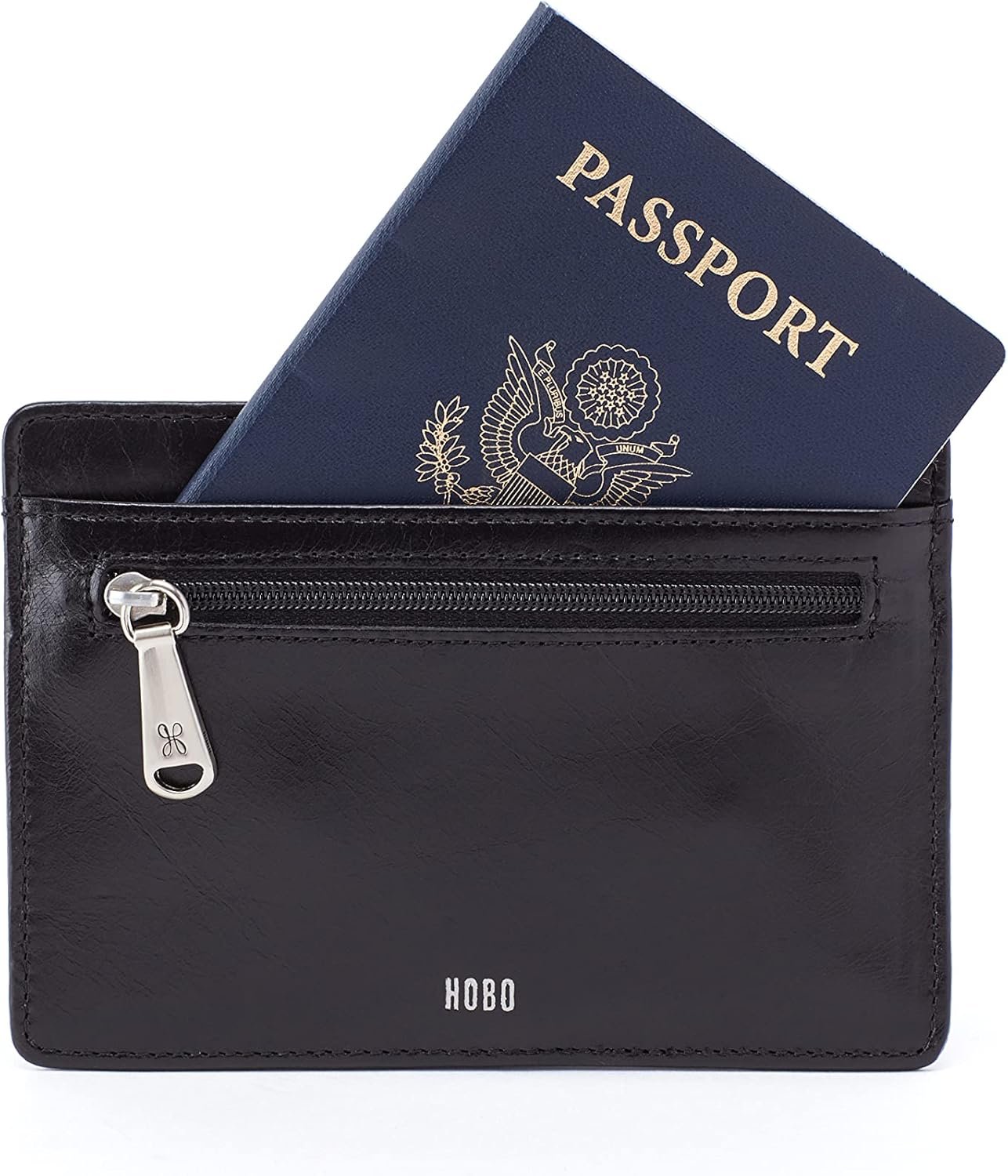 HOBO Euro Slide Leather Passport Wallet for Travel with Card Slots, ID Window, Zipper Pocket & Cash Organizer – Premium Polished Leather Passport Holder – Black