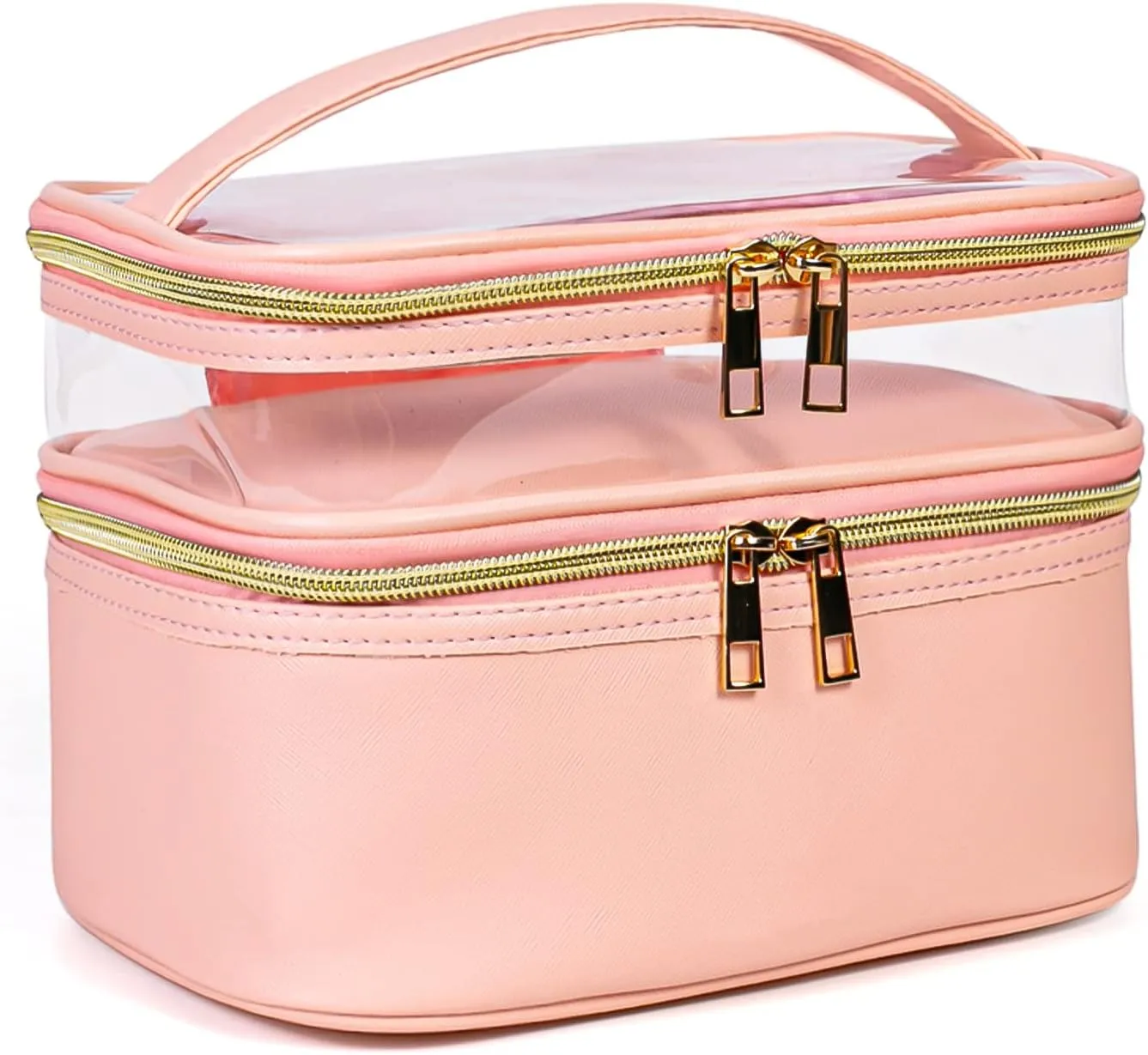 【LARGE CAPACITY】Size:8.7″ x 6.5″ x 5.9″, this makeup bag is large enough for your beauty essentials, such as lipstick, mascara, air cushion, powder, brushes and more.The layered design of this makeup bag allows you to store your precious cosmetics more organized and tidy.