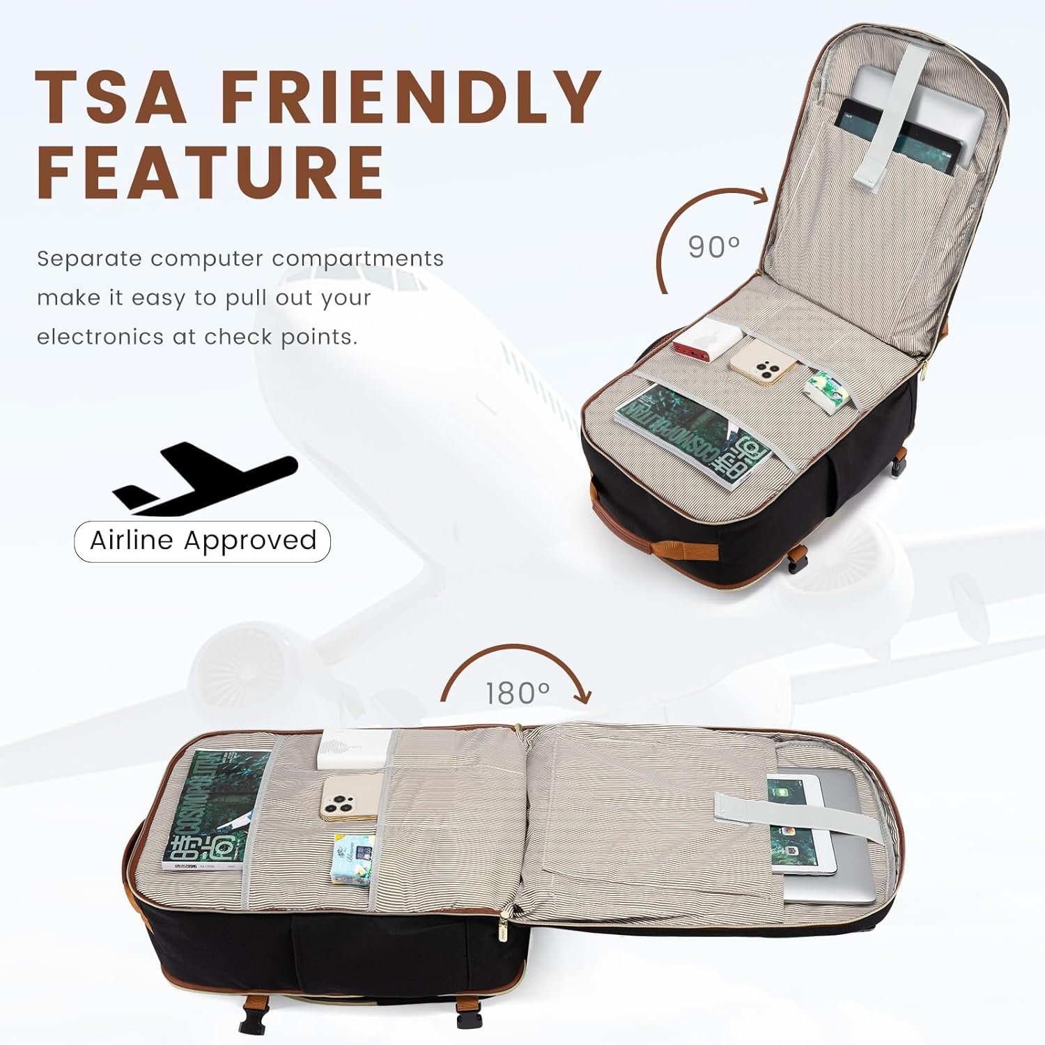 ✈️【BACKPACK FOR TRAVELING ON AIRPLANES】With an 18*14*8 inches size, this travel backpack meets the standard of personal item bags of airlines. It can be put on the luggage set and under the seat easily. The luggage strap on the back of the backpack allows it to be stably attached to a suitcase.