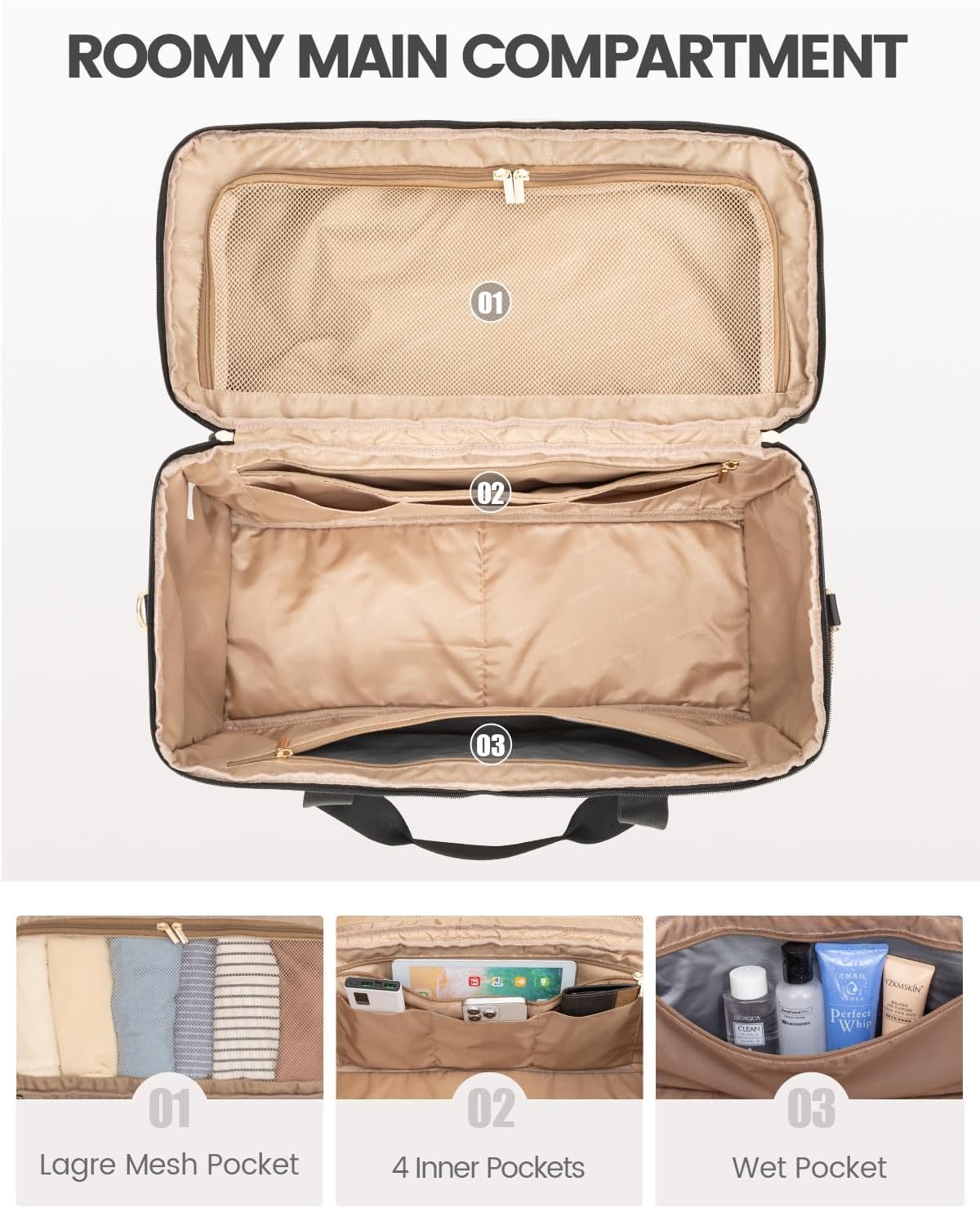 Main compartment with large capacity, perfect for camping, hiking, fishing, weekender getaway and many indoor & outdoor activities.