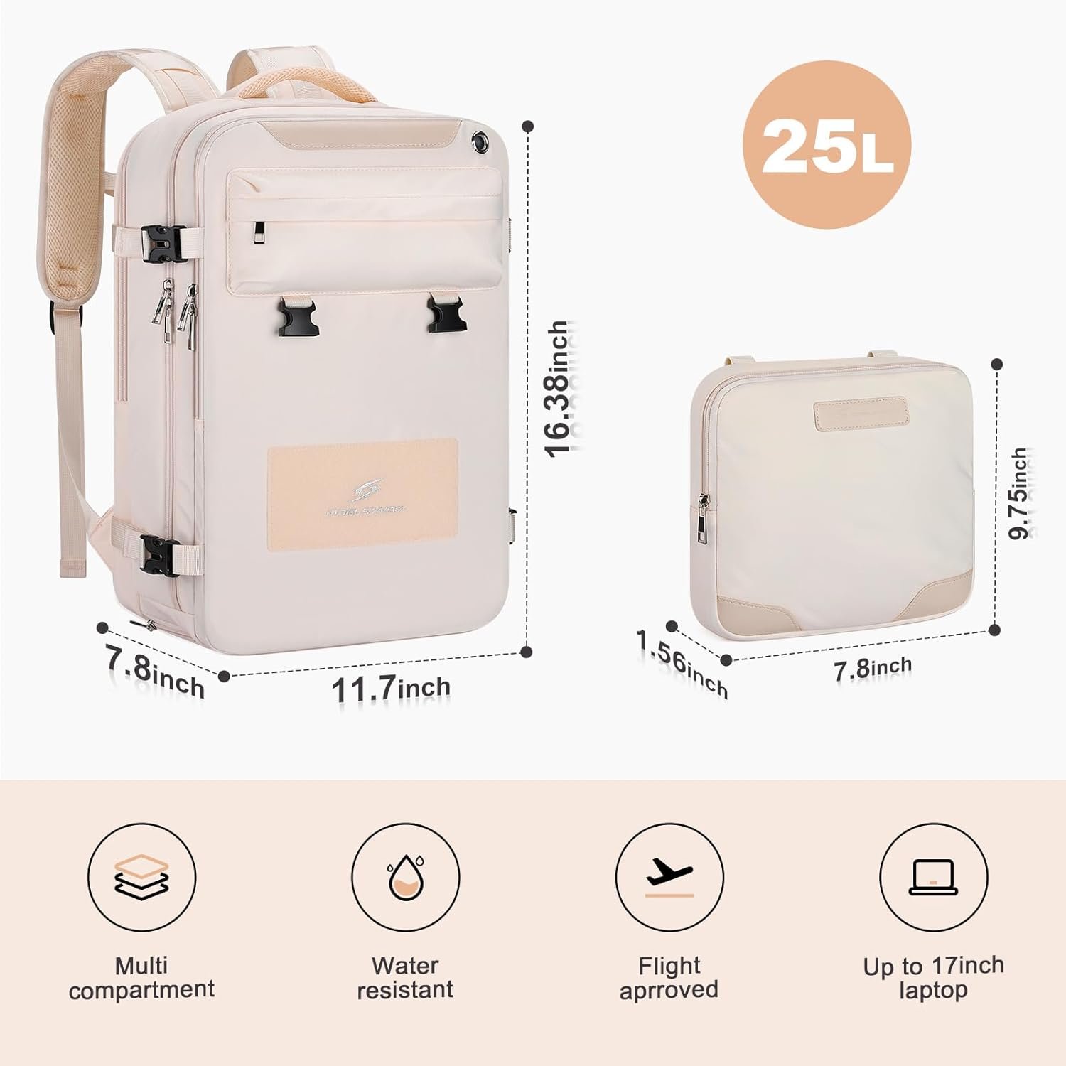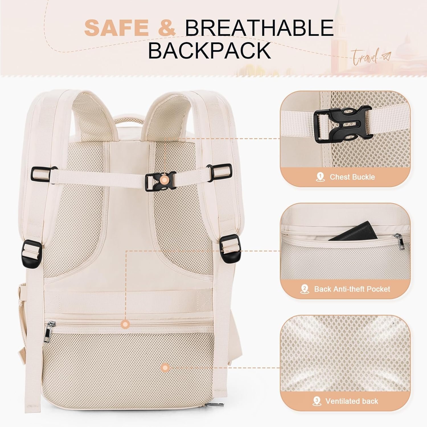 Maelstrom Travel Backpack for Women Men,25L Laptop Backpack Fits 15.6-Inch Laptop,Waterproof Carry On Backpack for Airplanes with Detachable Crossbody Bag & Shoe Compartment (Beige, Medium)