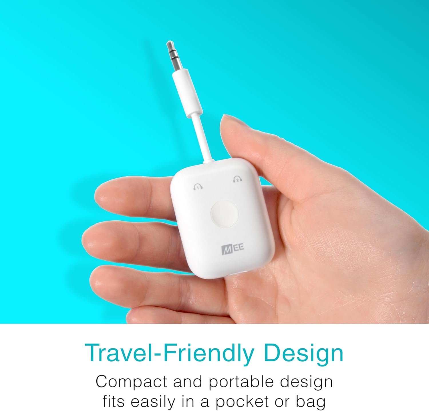 BLUETOOTH AUDIO TRANSMITTER FOR AIRPLANES: easily stream wireless stereo audio from in-flight entertainment systems to up to two AirPods or other Bluetooth headphones. Works with AirPods Pro 2, AirPods 4, AirPods Max, and other AirPods models, as well as other Bluetooth headphones and speakers.