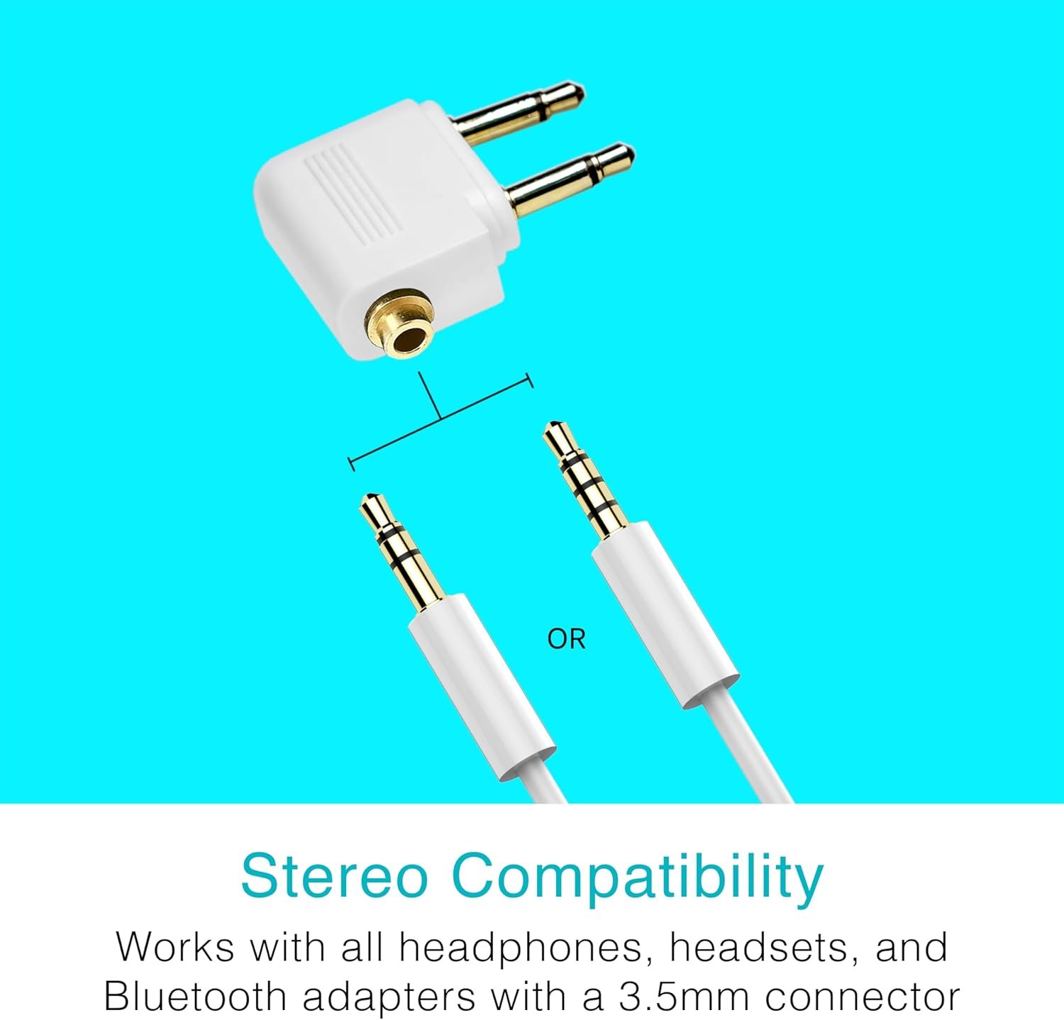 Includes 3.5mm audio cable and 2-prong adapters for international flights