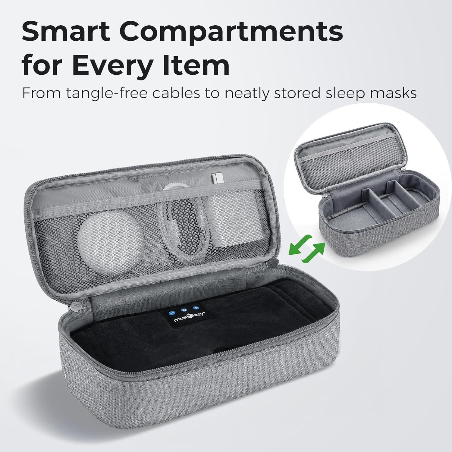 🧩 Adjustable Dividers for Custom Fit – Features removable, adjustable dividers so you can configure the internal layout to fit your MUSICOZY sleep mask or various accessories. Perfect for building a personalized storage space that adapts to different gear.