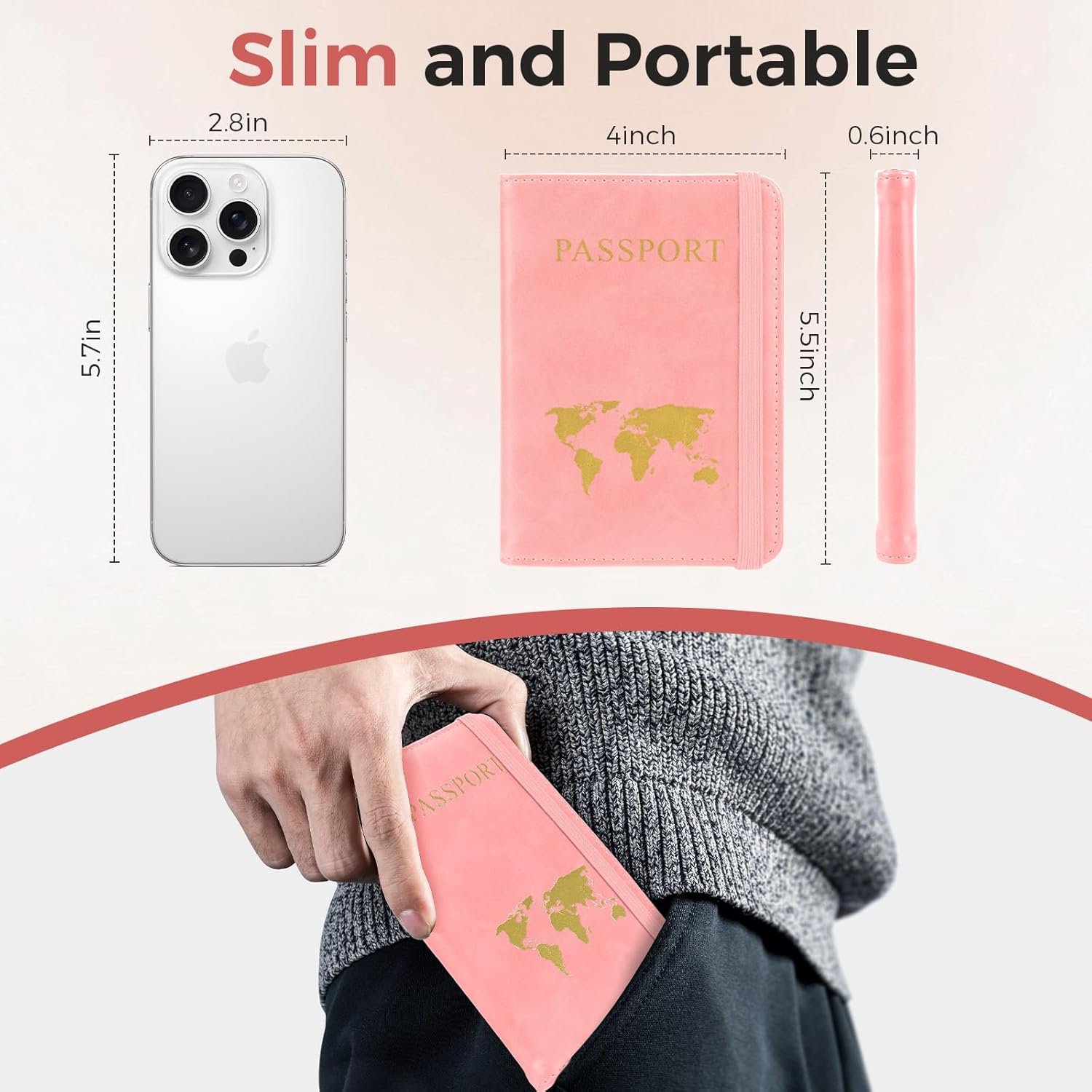Slim and Lightweight Design: The passport wallet is designed to travel with ease, featuring a sleek and slim profile that fits comfortably in pockets or bags without adding unnecessary bulk. This passport case perfects for business trips or vacations, it travel passport holder is the ideal companion for frequent flyers.