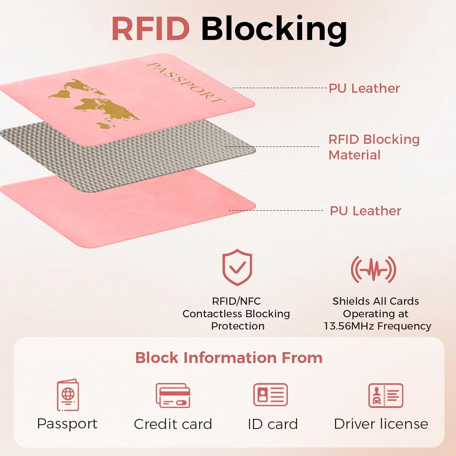 RFID Blocking Technology: RFID Passport Holder for travel with built-in RFID blocking material for enhanced security, it passport book protecting your ID cards, credit cards, driver’s license, and passport from personal information disclosure. Keep your personal information secure while on the go.