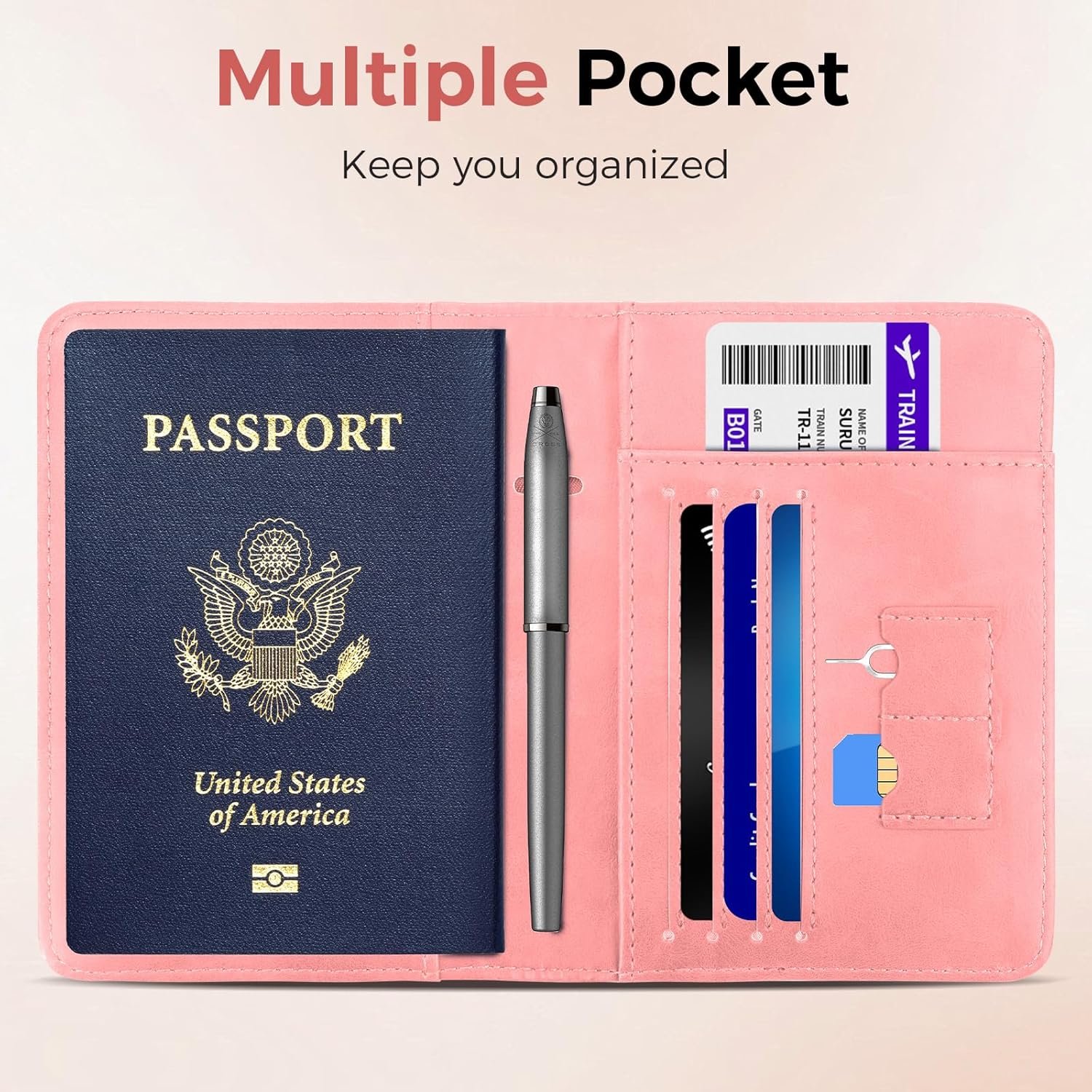Stay Organized: Stay organized and stress-free while traveling with our multifunctional passport wallet for men women, featuring designated compartments for business cards, credit cards, cash, boarding passes, SIM cards, and a pen. Keep all essentials easily accessible for a smooth boarding and transit experience.