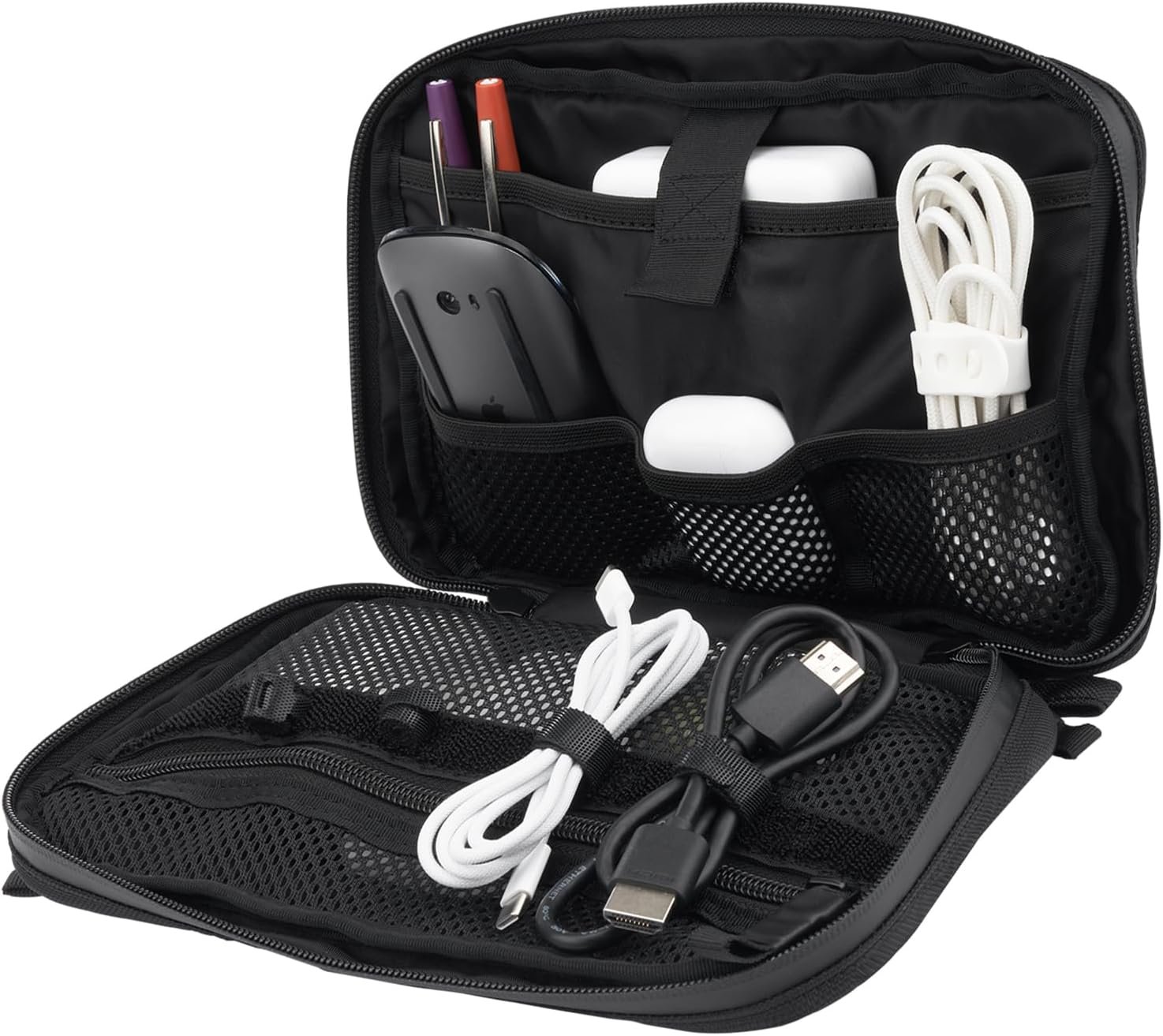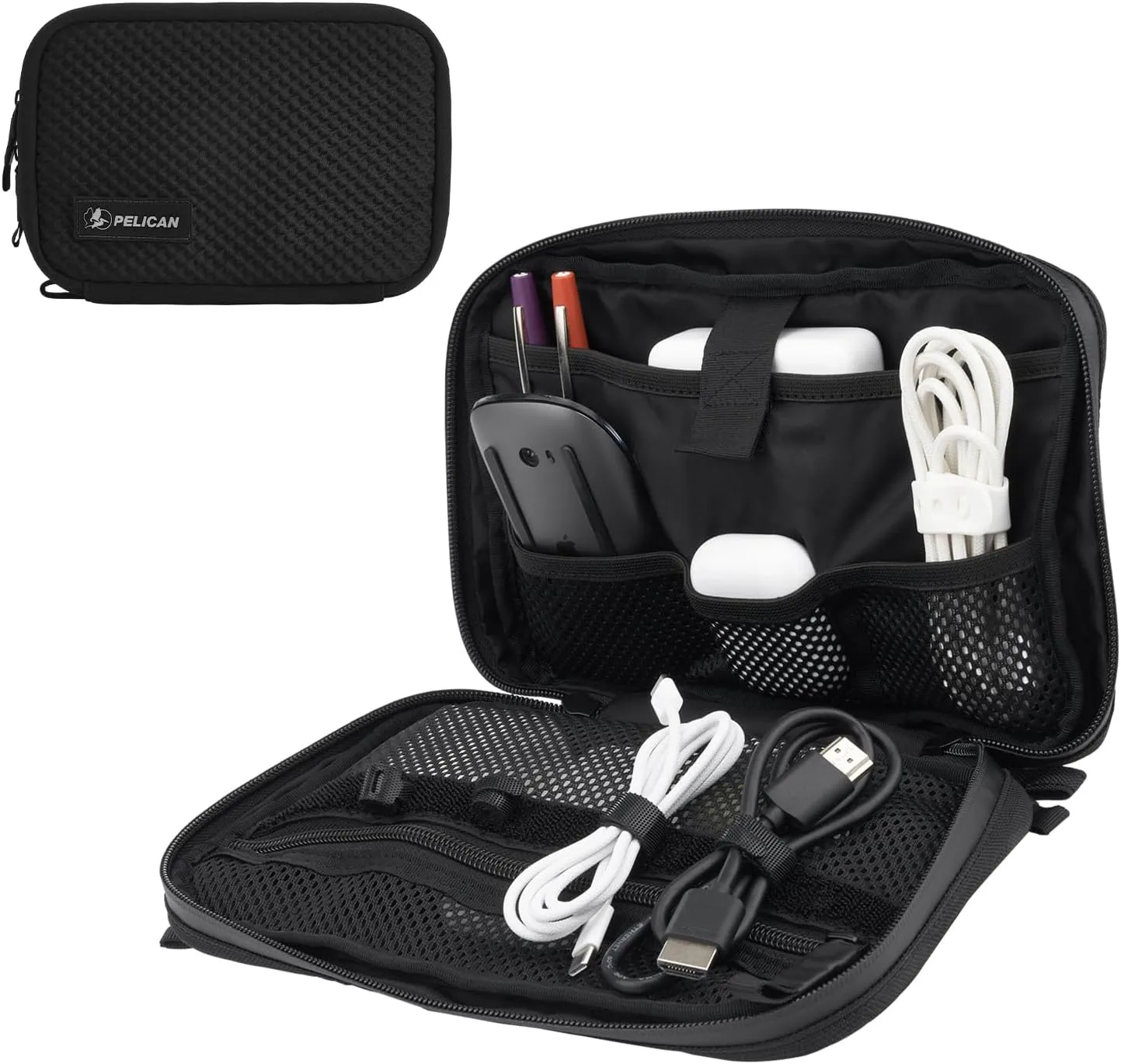 Pelican Electronic Organizer Travel Case – Portable Storage Bag with Multiple Storage Mesh Pockets for Cables, Chargers, Power Bank, AirPods – Cord Organizer and Airplane Travel Essentials Bag – Black
