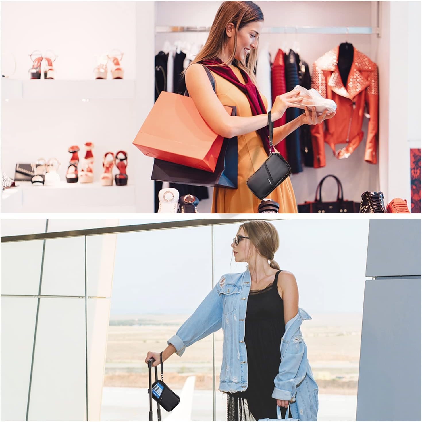 ruboka Fireproof RFID Blocking Passport Holder Wallet, Family Multiple Passport Holder Cover Bag Waterproof, Travel Document Organizer Credit Card Clutch Bag for Men Women