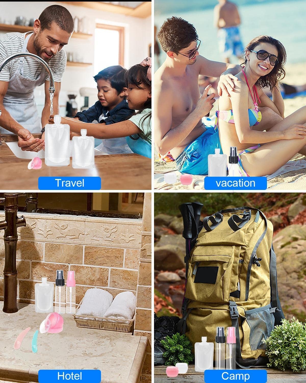 【MUST-HAVE Travel Sets】These travel containers for toiletries are compact and lightweight for easy packing into your purse, carry-on, backpack or suitcase. Our travel-size poucehs are reusable, leak-proof, durable and dishwasher safe.
