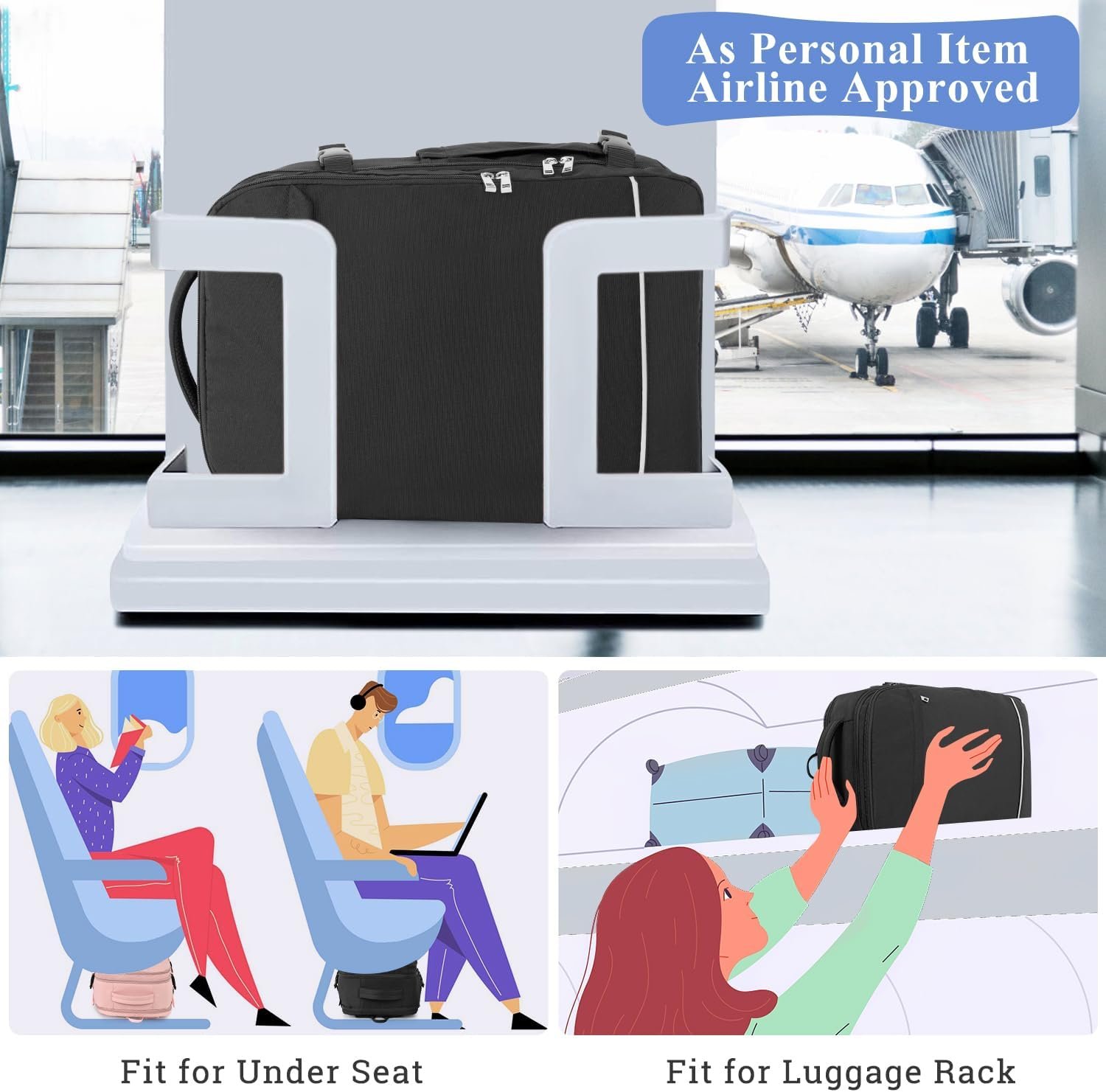 【Flight Approved Personal Items】: This travel backpack is 46*32.5*20cm/18.1*12.8*7.9 inchs,it can meets the requirement of the most airlines.It also can fit in the overhead bin and under the seat. The 180-degree free opening and closing design allows tsa inspection to pass quickly