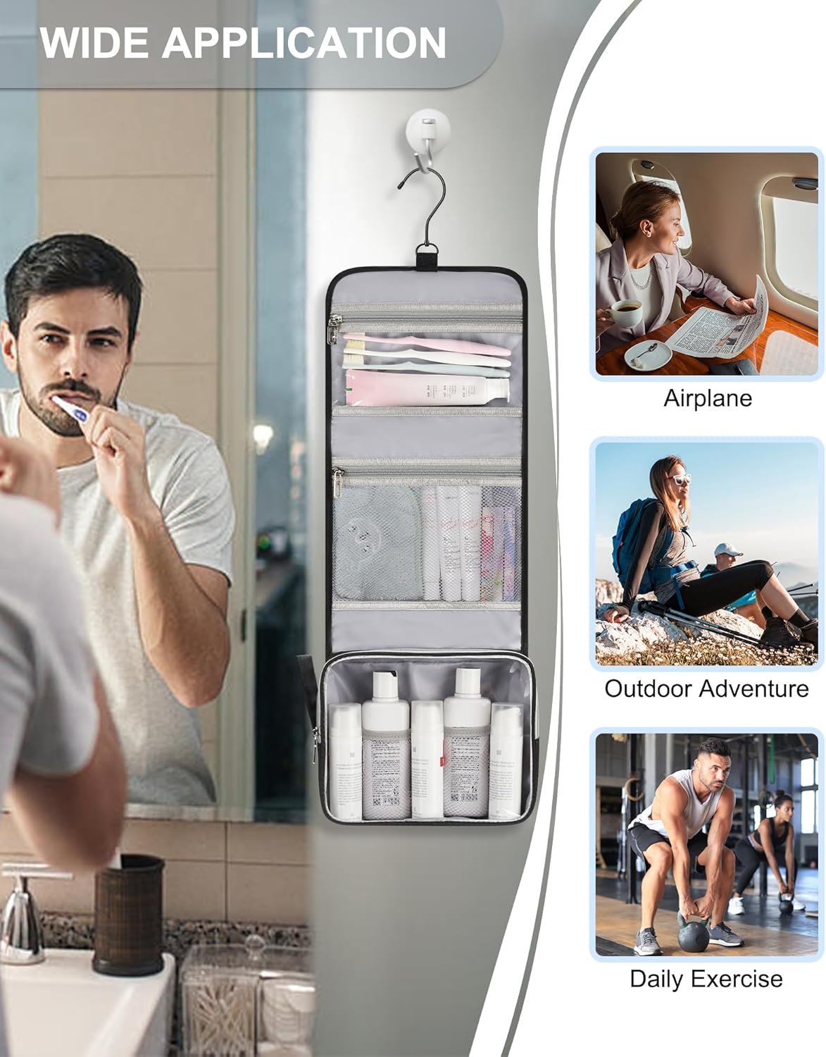 WIDELY USE ORGANIZER – The Hanging Toiletry Bag is great for overnight staying, short trip, gym shower and outdoor adventures as an organizer, washbag, necessaries, toiletries bag. Your loyal companion in daily life