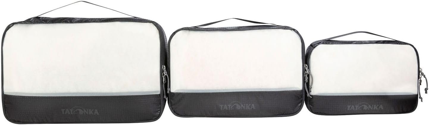 Tatonka Packing Cube Mesh Bag Set (3 Pieces) – Three Lightweight Mesh Bags in Different Sizes – for Clear Packing of Travel Luggage in Suitcase or Travel Backpack (Black)
