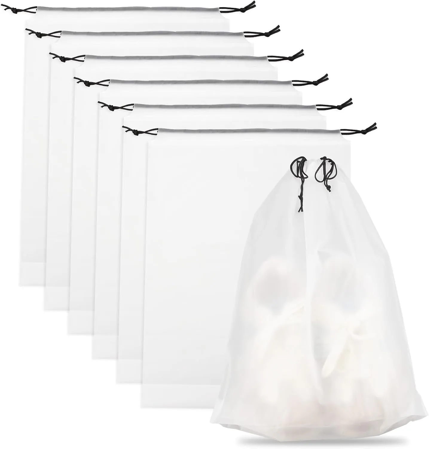 Upgraded Material: Crafted from reinforced PE material, our shoe bags resist tearing, offer waterproof protection, and are reusable. Dual drawstrings enable swift opening and closing for convenient organization