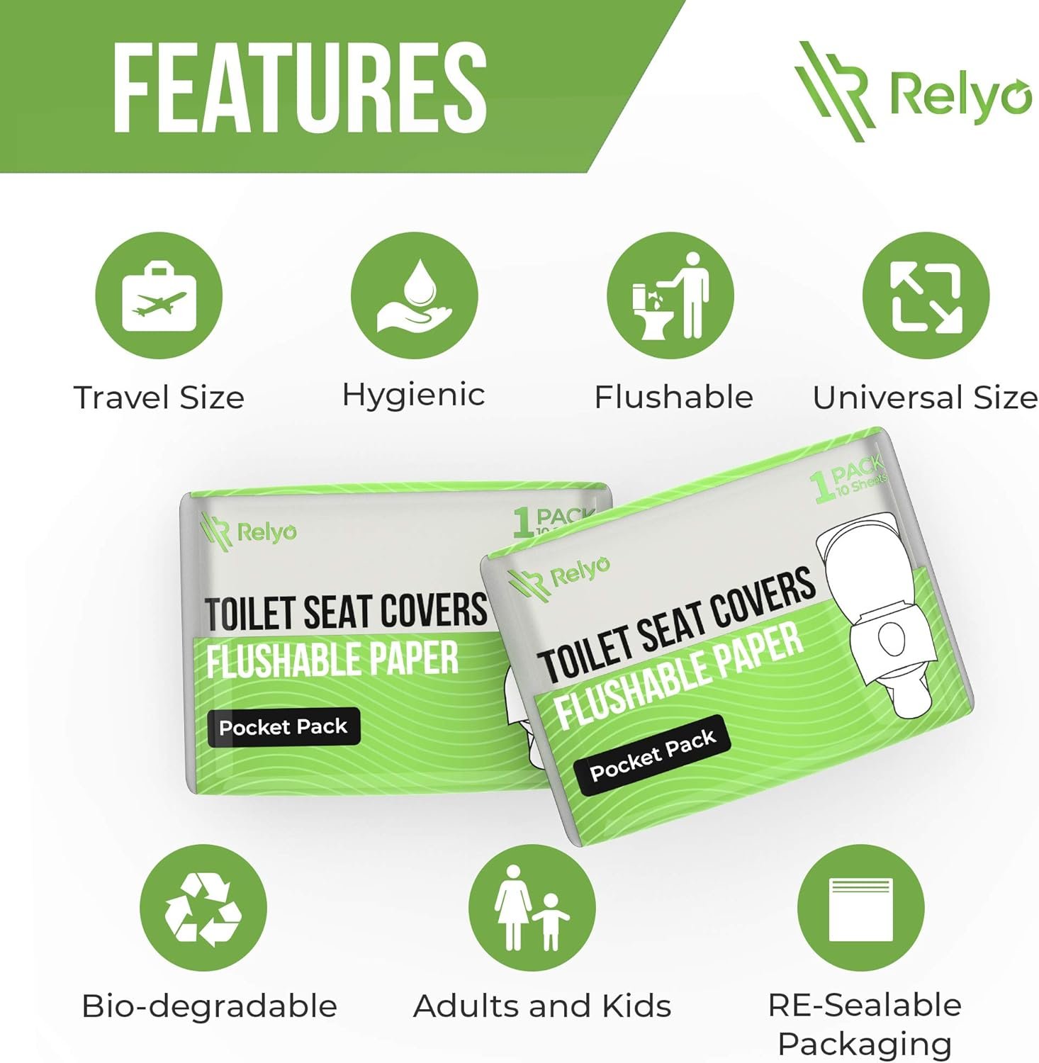Travel-Friendly & Compact: Designed for moms, travelers, and commuters, Relyo toilet seat covers disposable flushable fit perfectly in purses, diaper bags, or carry-ons. Lightweight and individually wrapped for ultimate hygiene on the go. Must have on your car travel essentials for long trips.