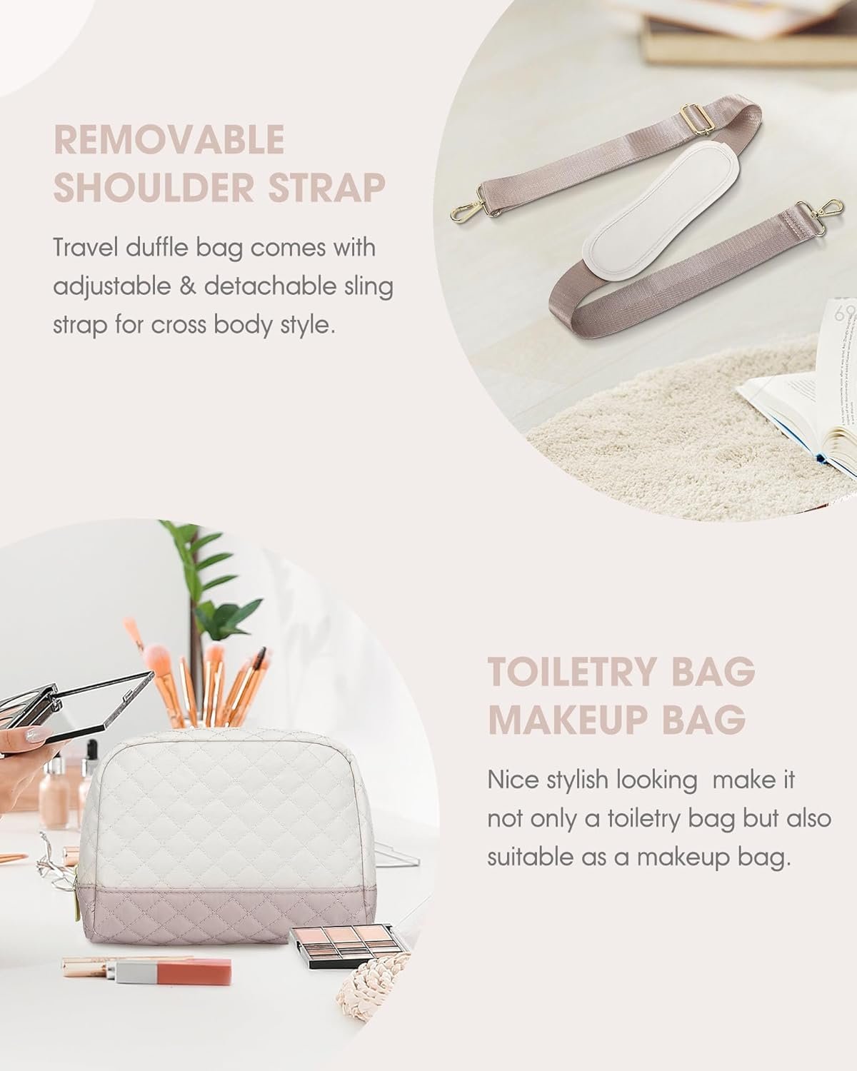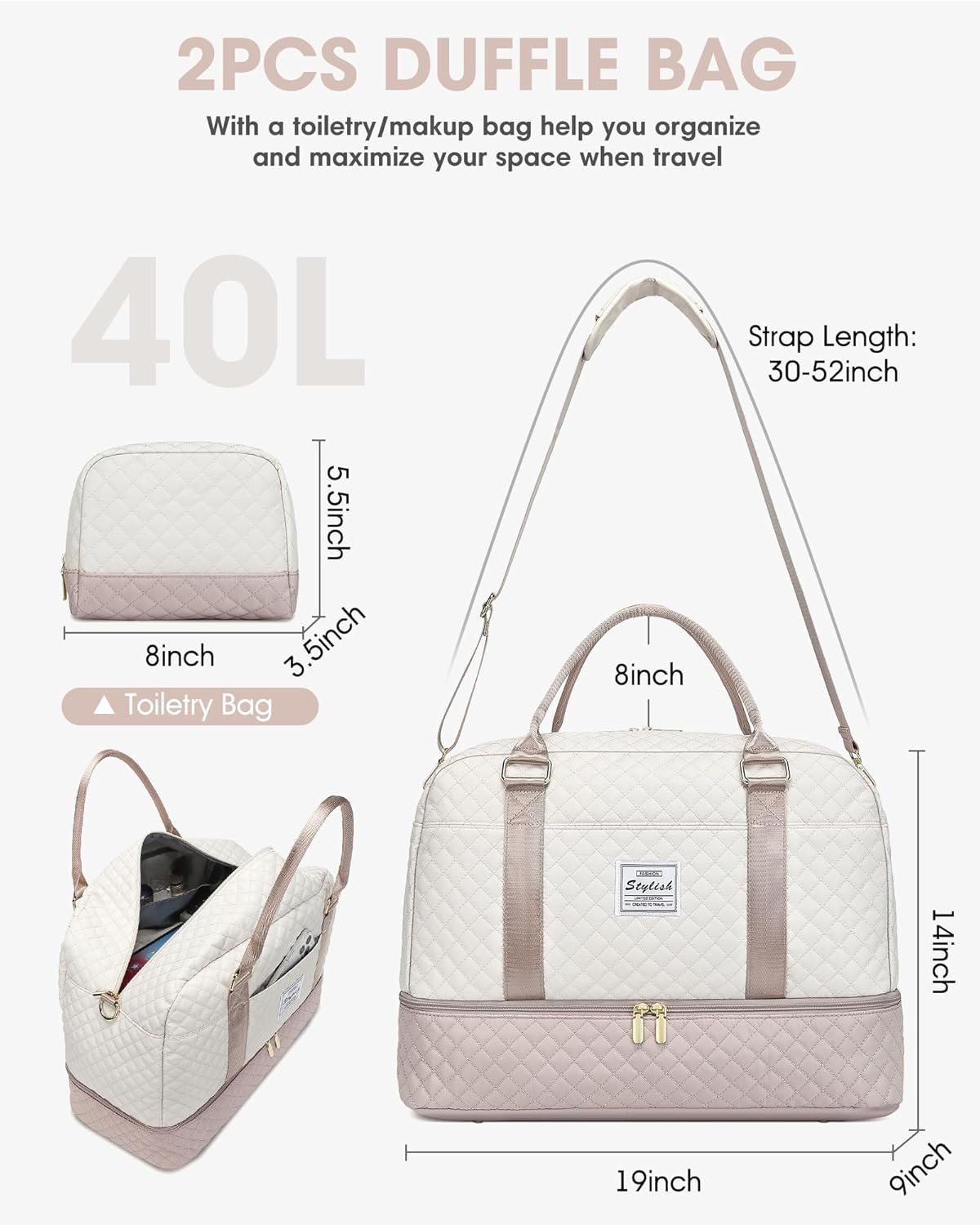 【Upgraded 2 Pcs Set Weekend Bags】:The travel bag for women comes with updated 2 Pcs Set: 1 travel duffel bag +1 toiletry/makeup bag. Roomy space can even fit in 3-5 days of daily essentials. The packing cube with a clear mesh can help you keep clothes fresh, and easily tell where everything is. Help you organize and maximize your space when travel.