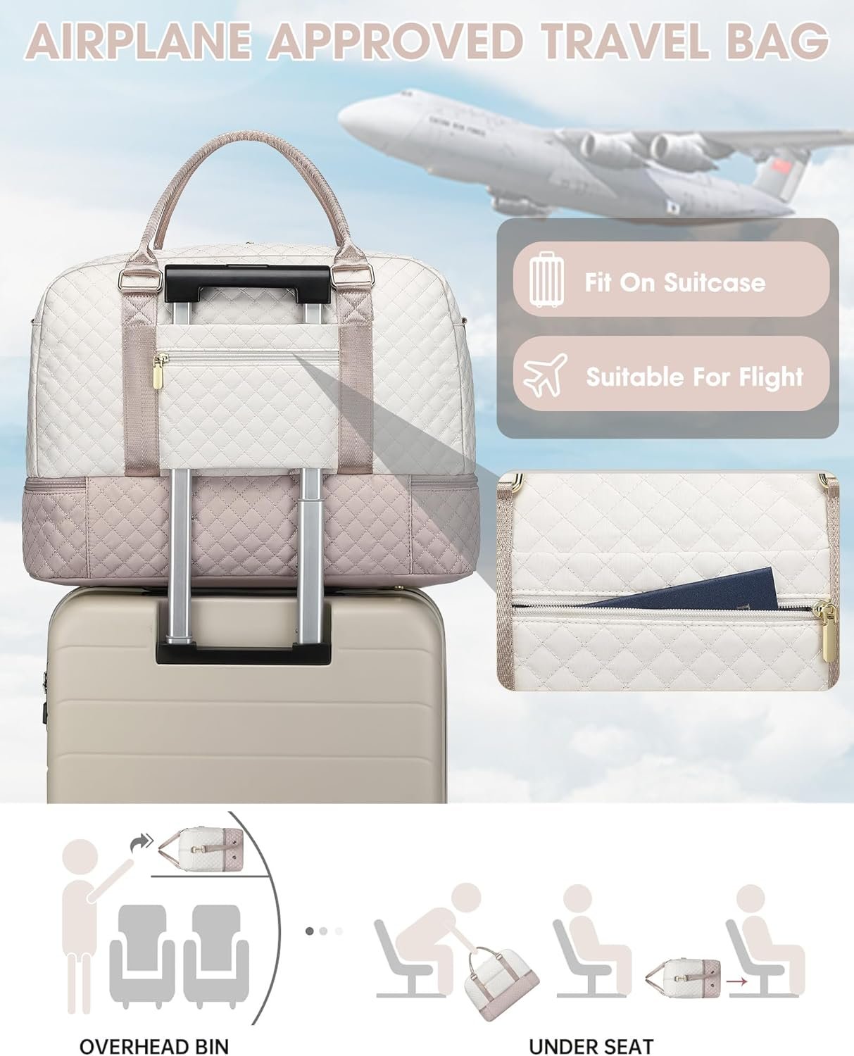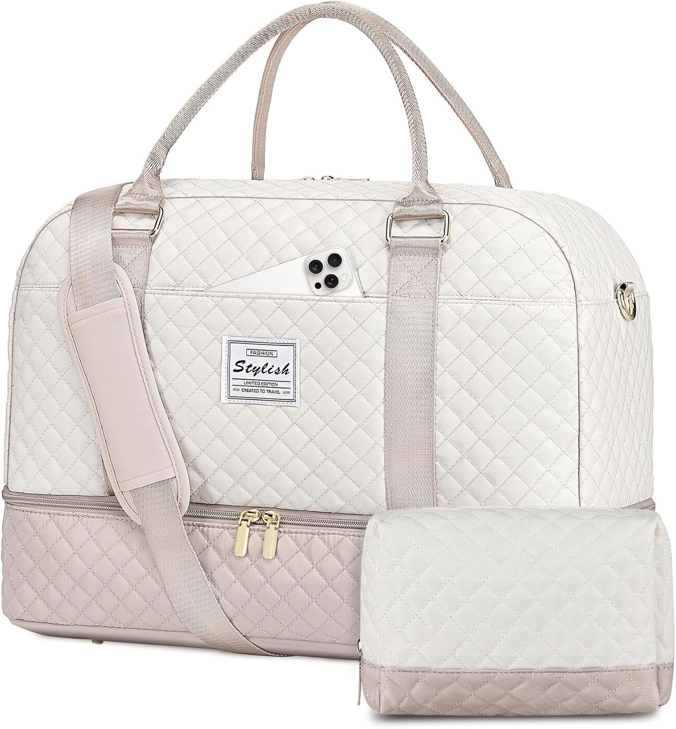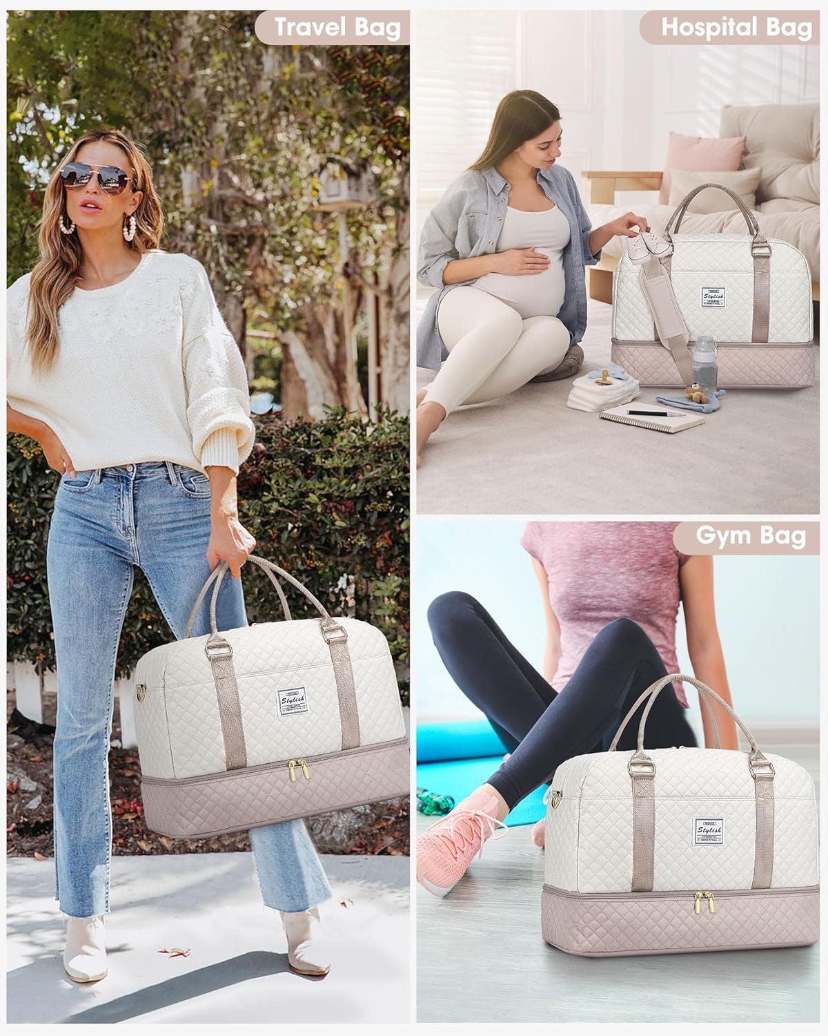 Travel Duffle Bag Weekender for Women: Travel Duffel Bag Carry-On Overnight Bag with Shoe Compartment & Wet Pocket Large Weekend Tote Bag withGym Duffel Bag for Hospital Beige