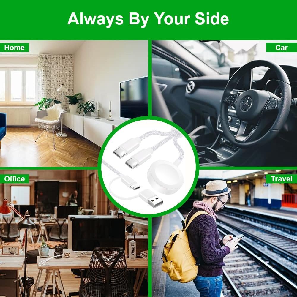 Upgraded 3-in-2 for Apple Watch charger cable USB C | Designed for Long-Lasting Performance and Safety