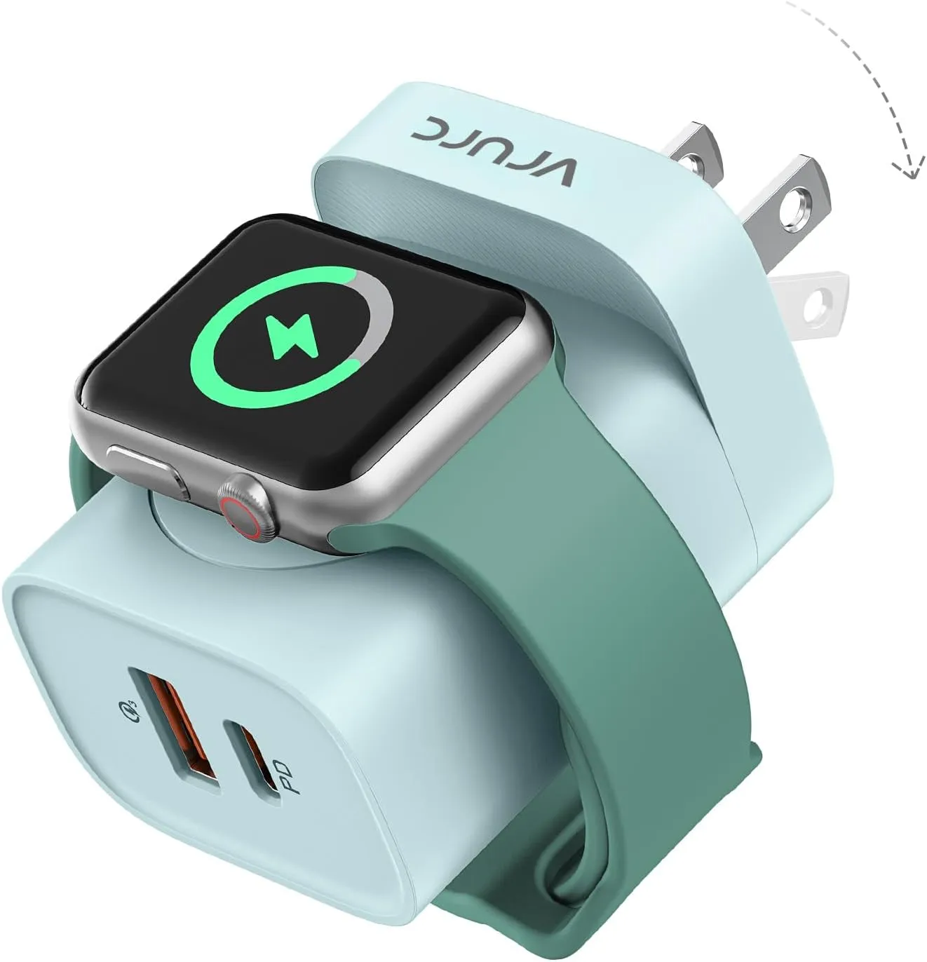 Mean Features For Apple Watch/Dual Ports Fast Charging/Foldable Plug/3-IN-1 Design Max Output USB C Port(20W), USB Port(18W) Compatible for Apple Watch/iPhone/Samsung Phones/Android/Tablets Weight 3.52 Oz/100g Size 2.15* 1.69* 1.18 in