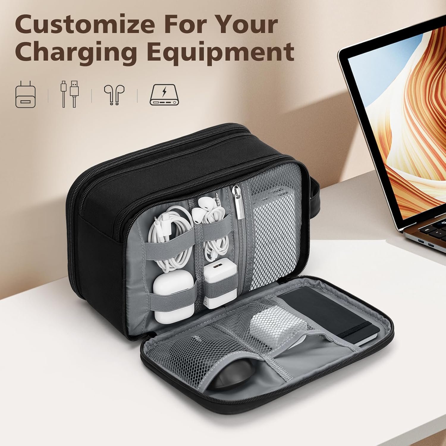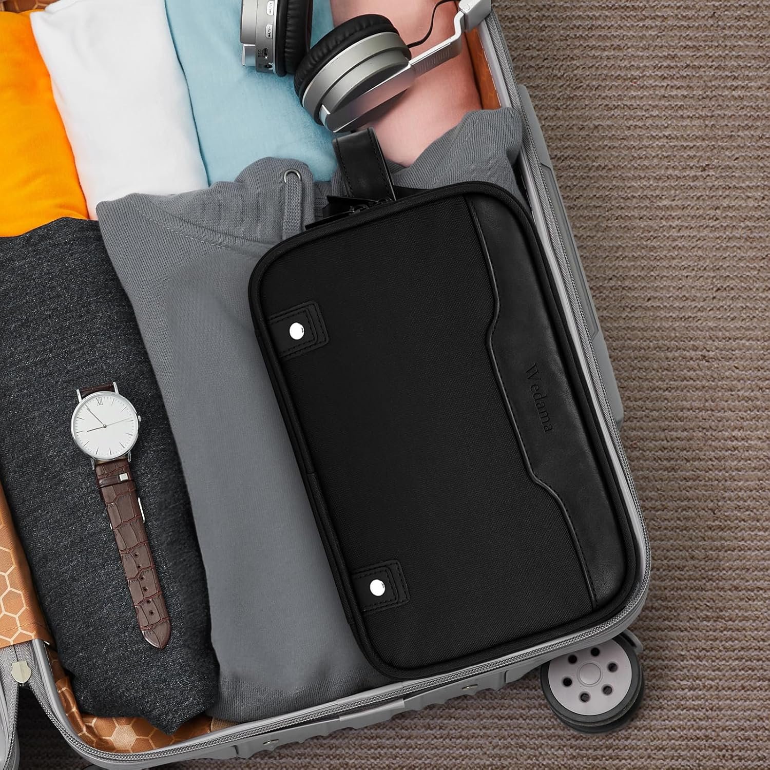Extra Electronic Organizer: Wedama toiletry bag for men is designed with electronic cable organizer compartment. The multiple mesh pockets and elastic loops are great for taking your cords, cables, USB drive, cellphone, charger, mouse, flash drive, and other accessories, which also protect your electronics accessories. Saying goodbye for messy cords, making your life happier.