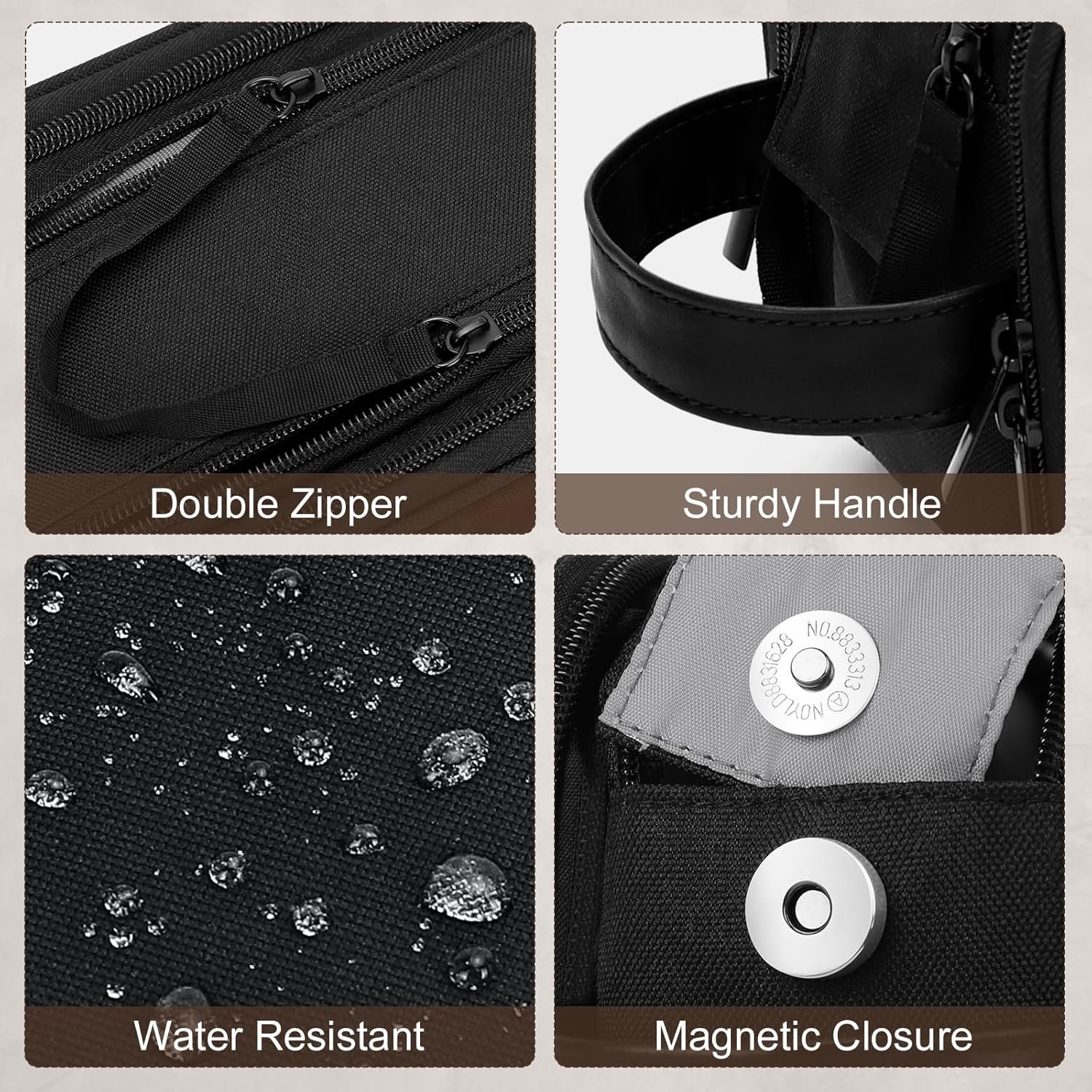 Neat and Organized: The travel toiletry bag is designed with double zippers, allowing for an easy access to inner contents. The main compartment with a firmly magnetic buckle, increasing the closure of the toiletries bag. The 3 compartments with elastic straps can be hold bottles of various shapes and keep items upright, also putting cords and other items, keeping all your items organized.